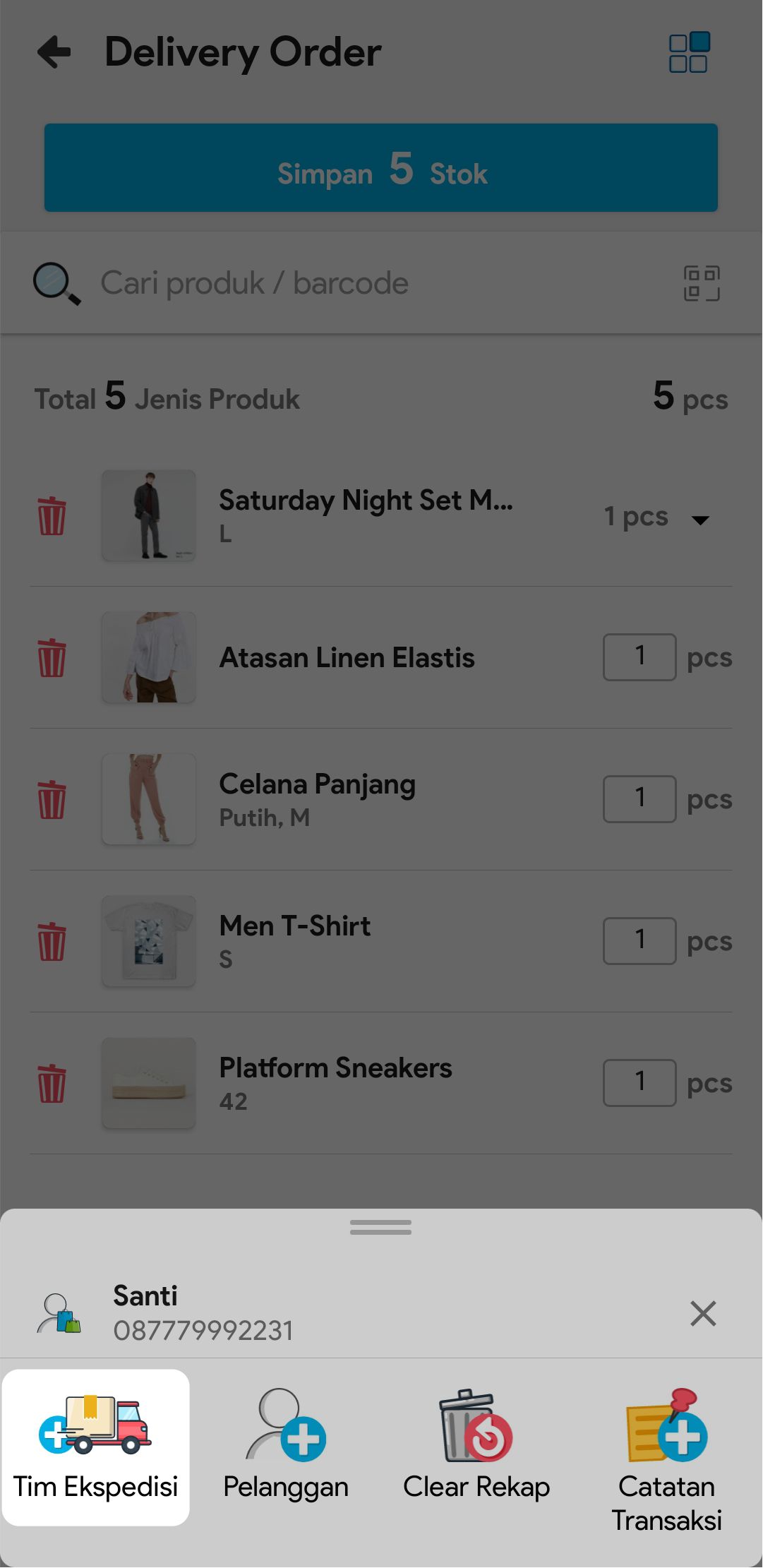 7. Masukkan jumlah stok yang akan dikirim atau scan barcode produk untuk menambah stok yang akan dikirim.