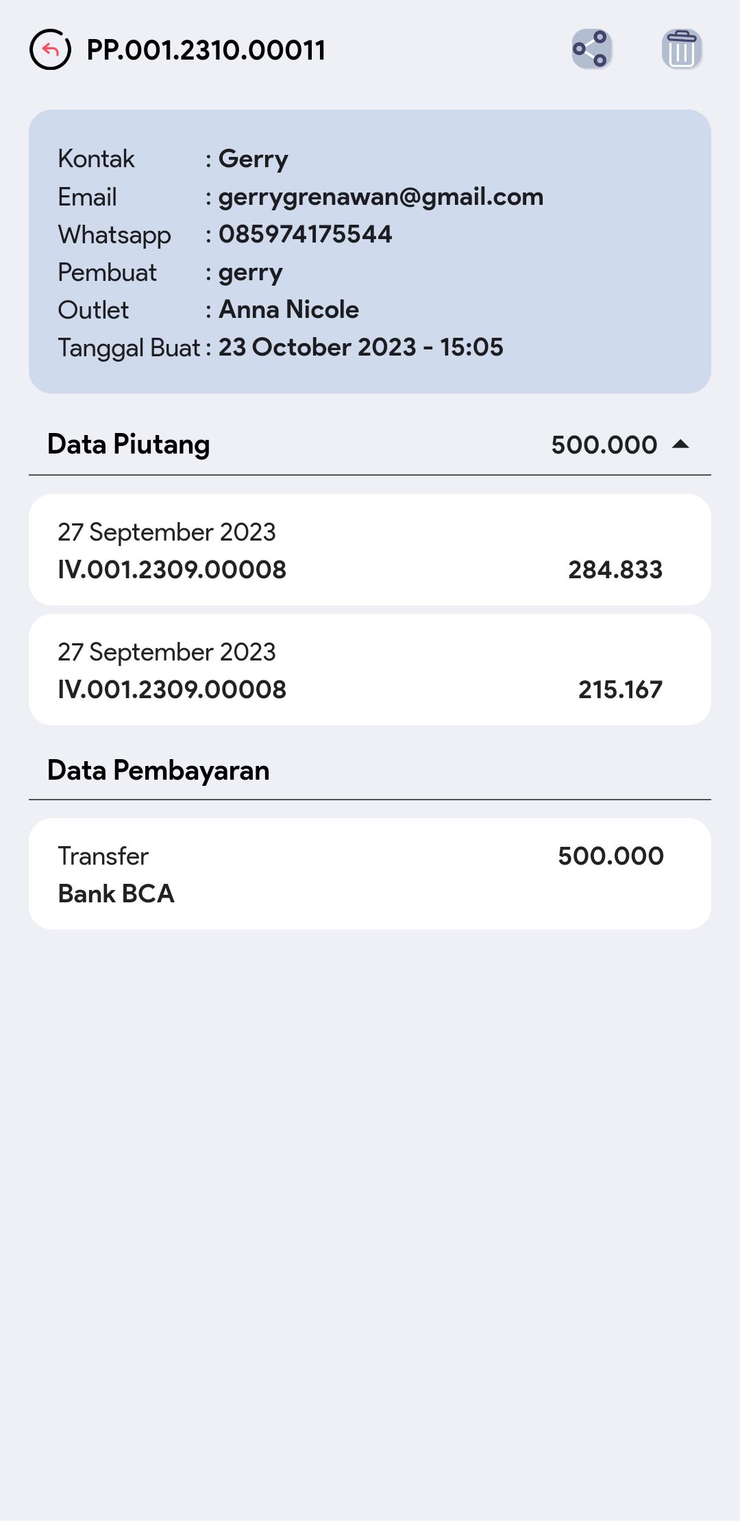 4. Cari dan pilih transaksi pelunasan piutang yang diinginkan untuk melihat informasi lebih detail
