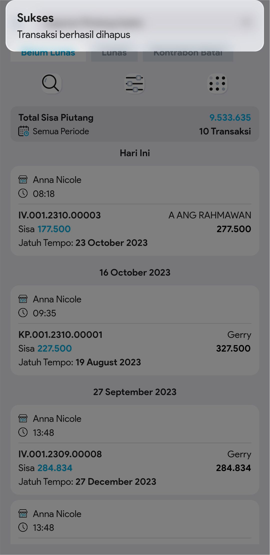 *kontrabon piutang dengan status lunas atau pernah dilakukan pelunasan, tidak dapat dibatalkan
