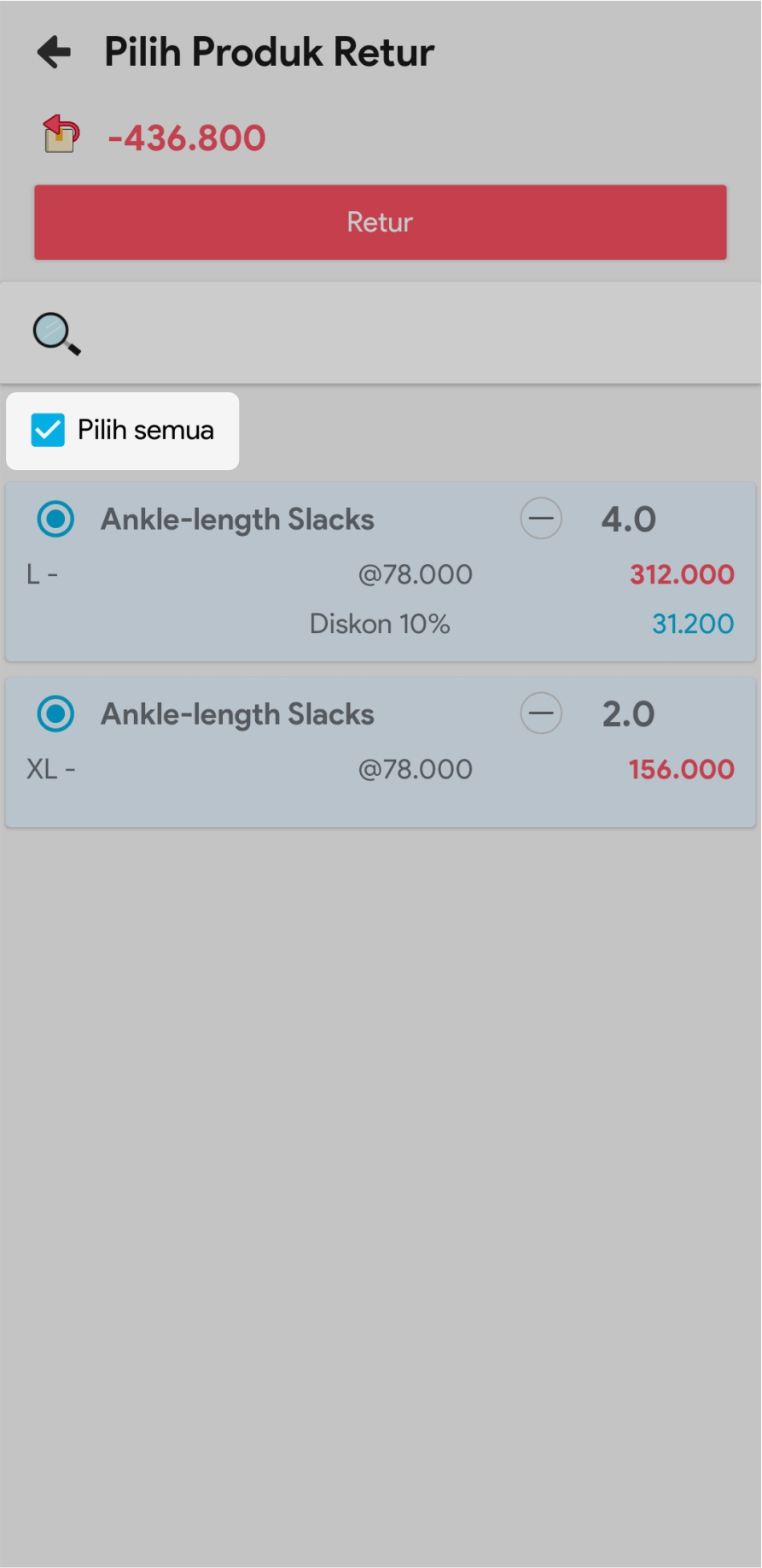 6. Atau beri tanda di depan nama produk yang akan diretur