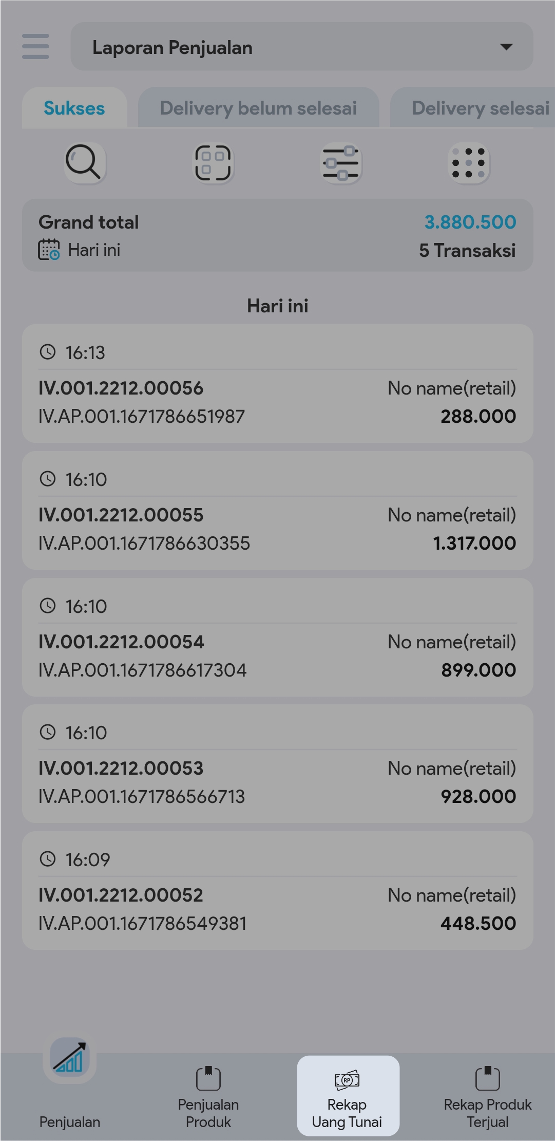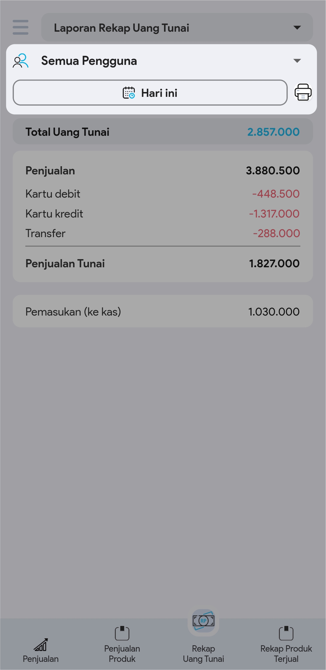 2. Pilih footer Rekap Uang Tunai