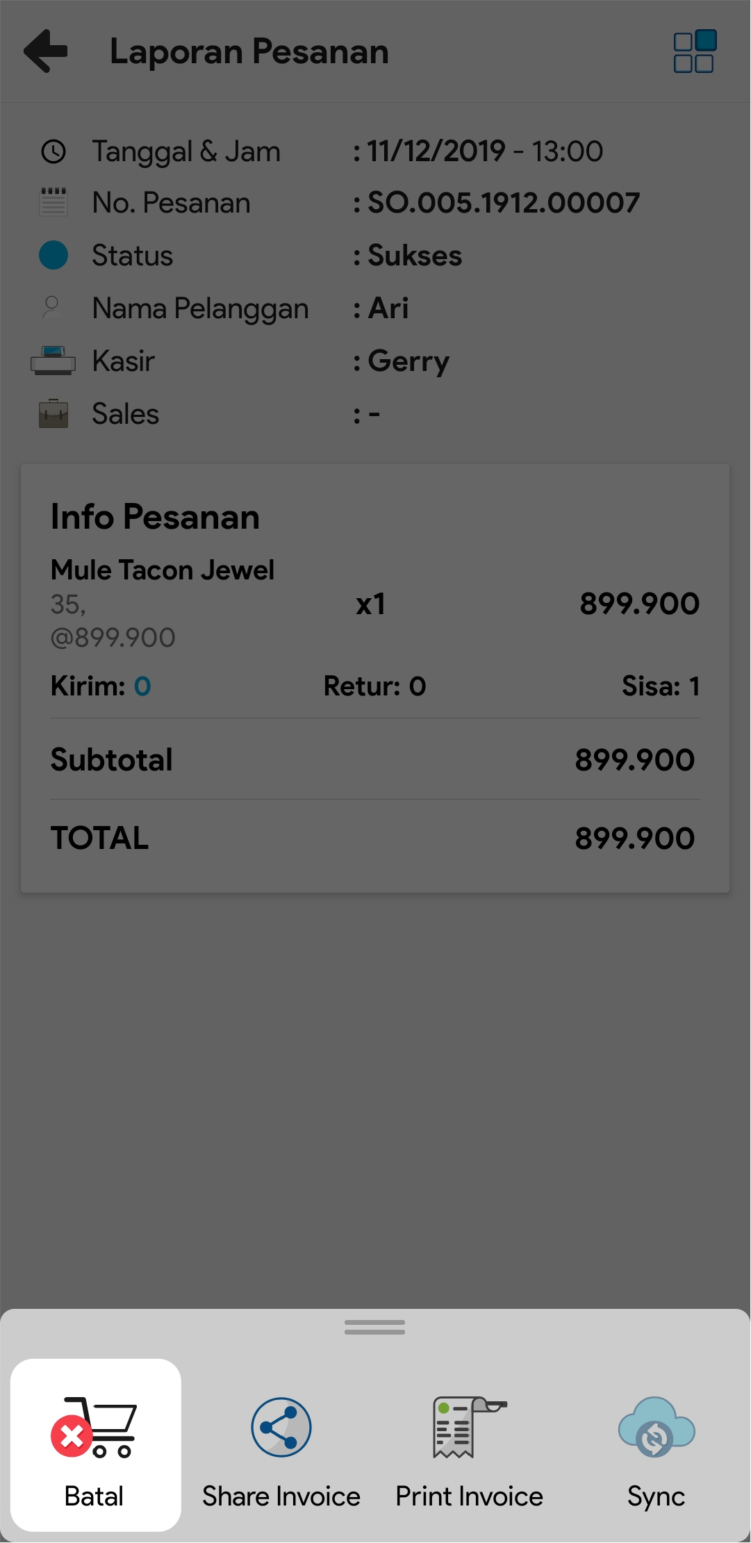 4. Pilih pesanan yang dimaksud