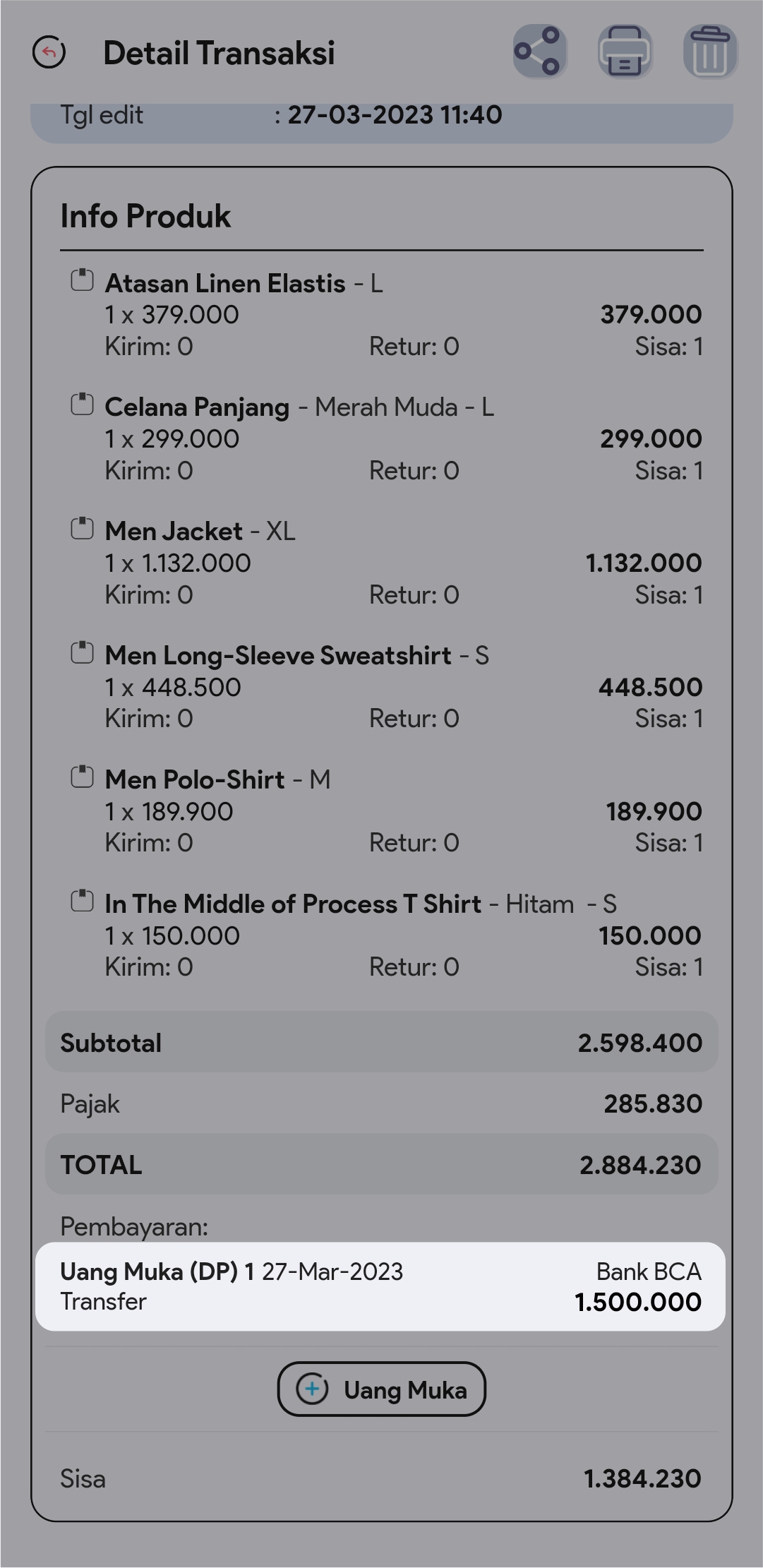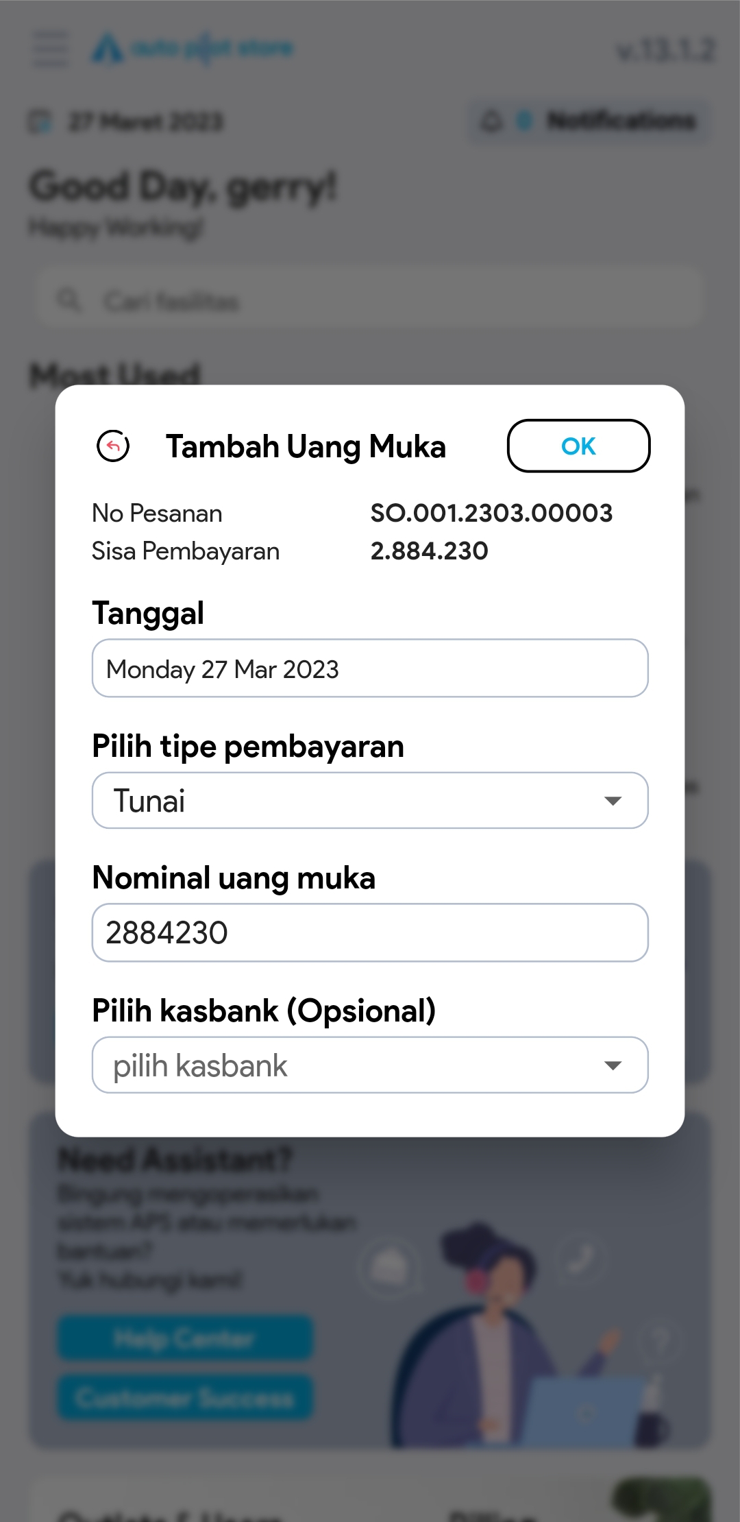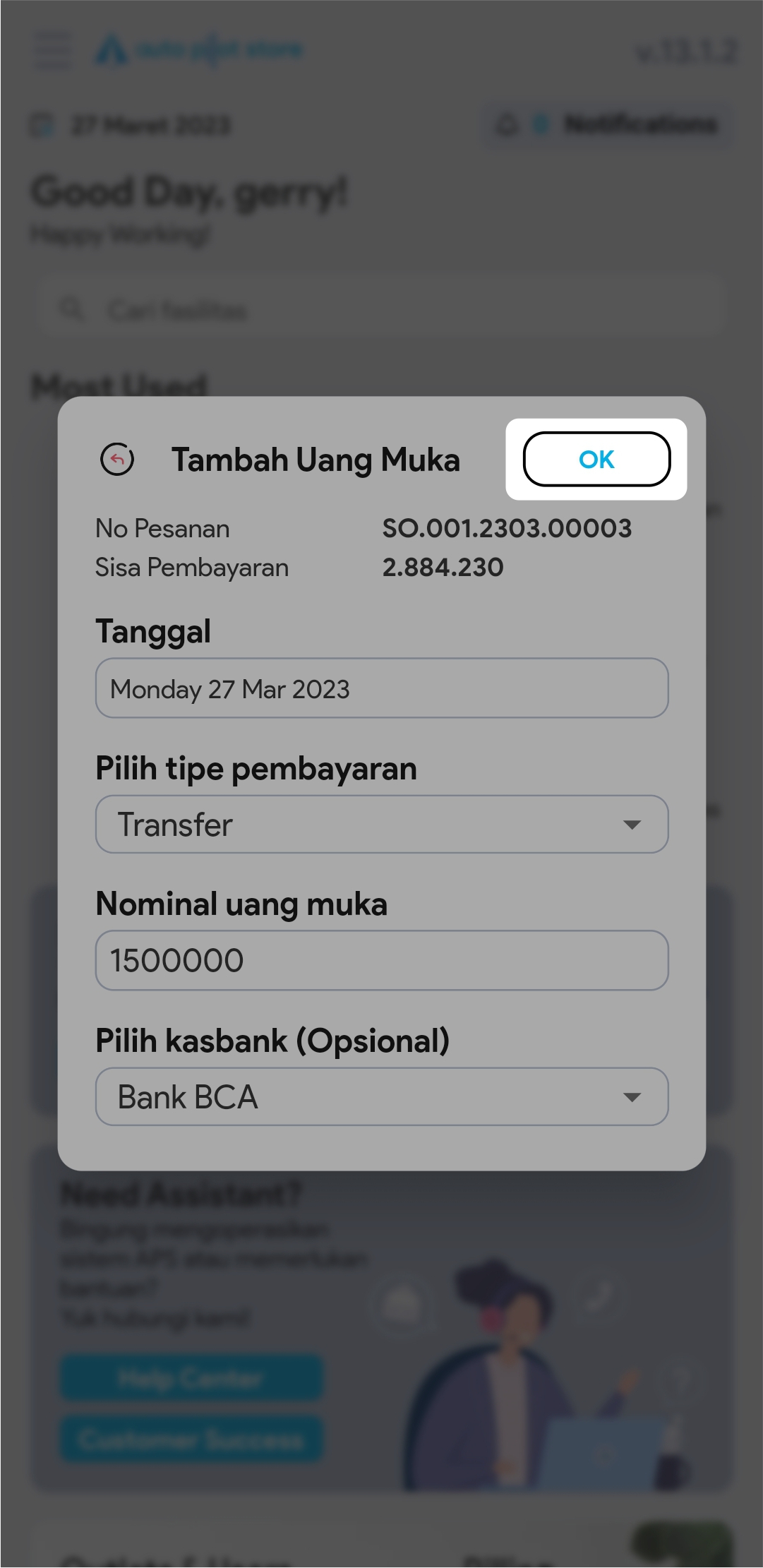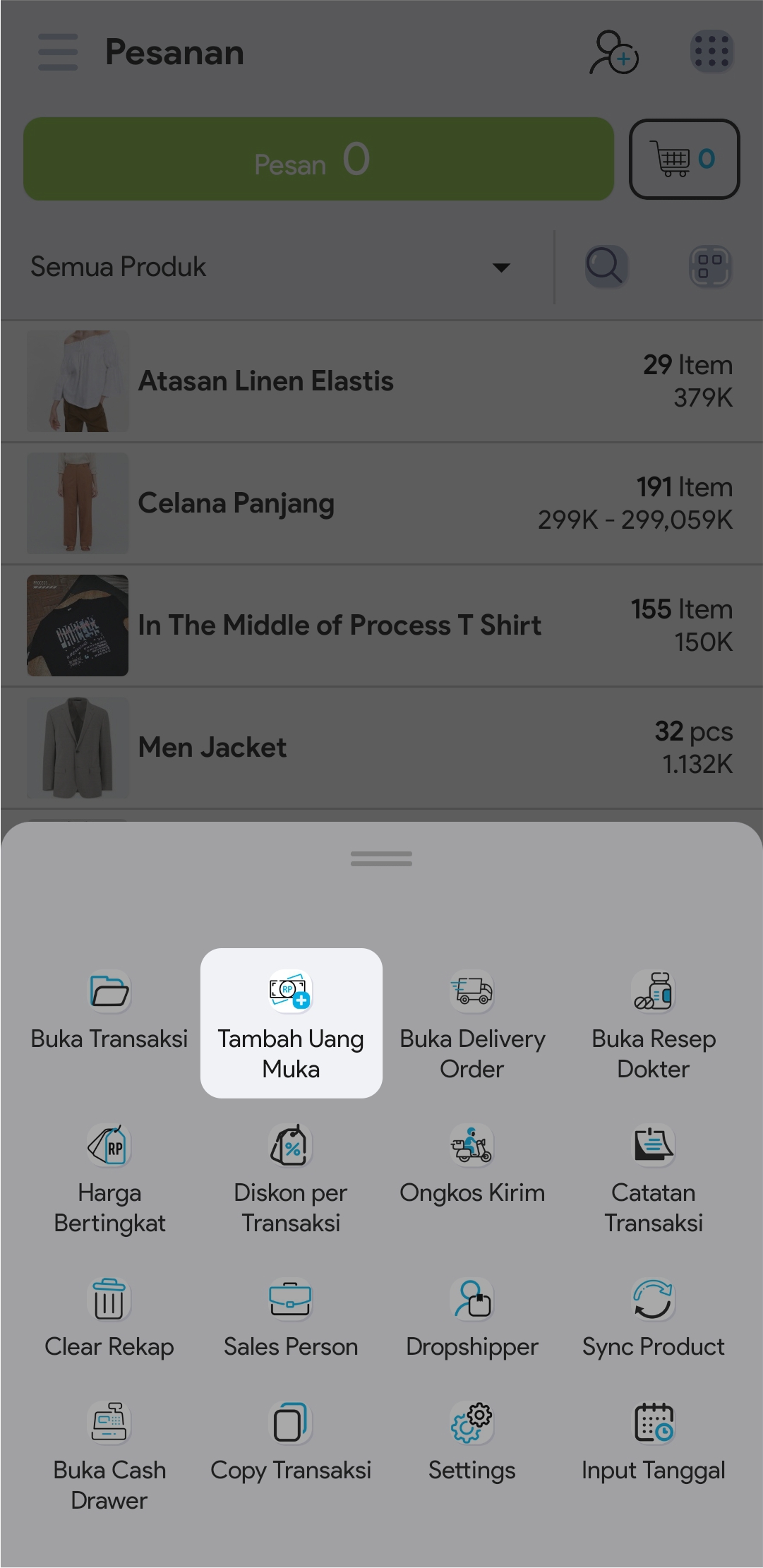 Menambahkan DP (down payment / uang muka) Pada Pesanan Pelanggan Melalui Fasilitas Pesanan Pelanggan