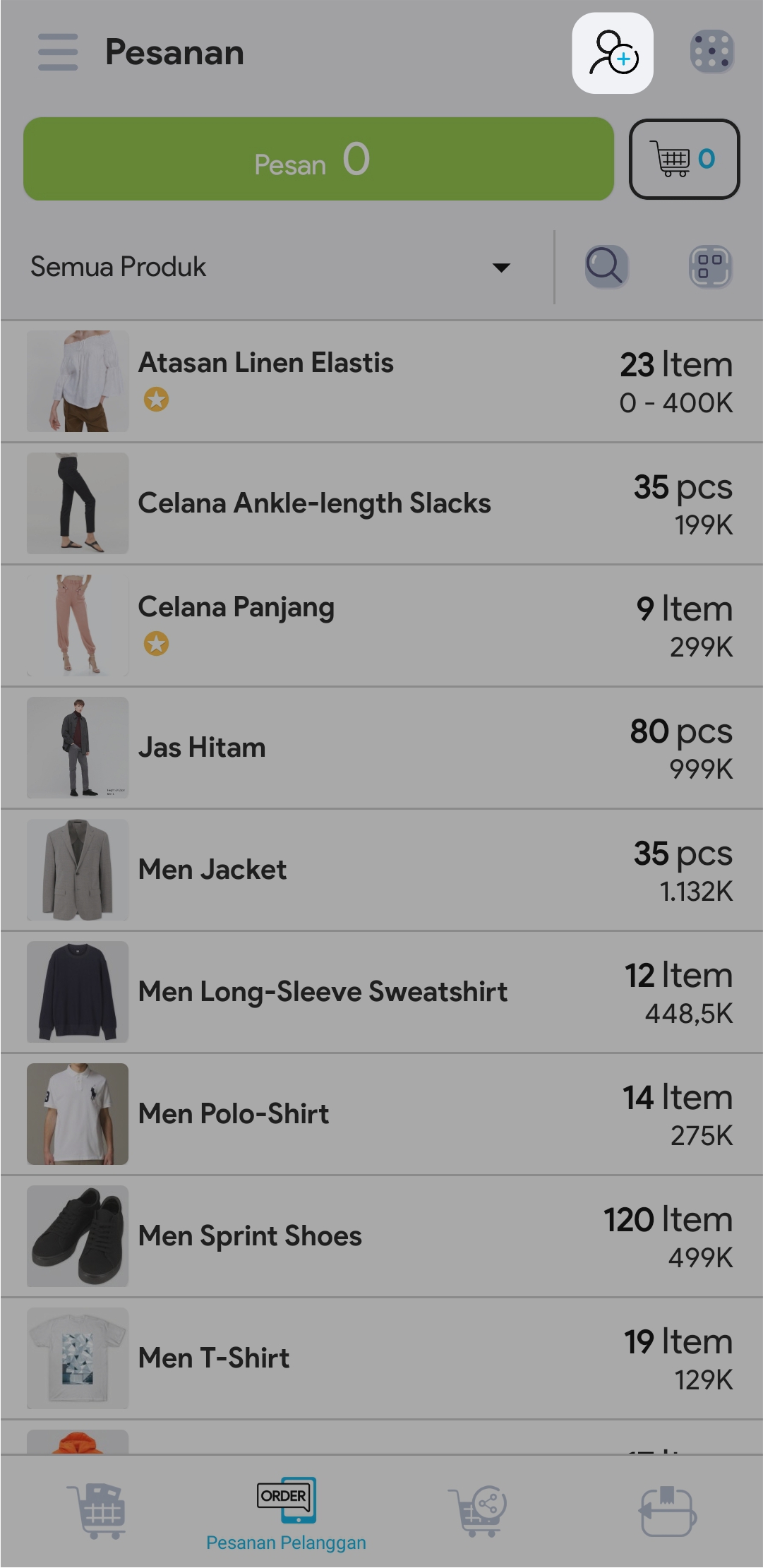 5. Masukkan jumlah produk dengan cara mengetuk produk sebanyak jumlah produk yang ingin ditransaksikan atau atur jumlah produk di icon Keranjang