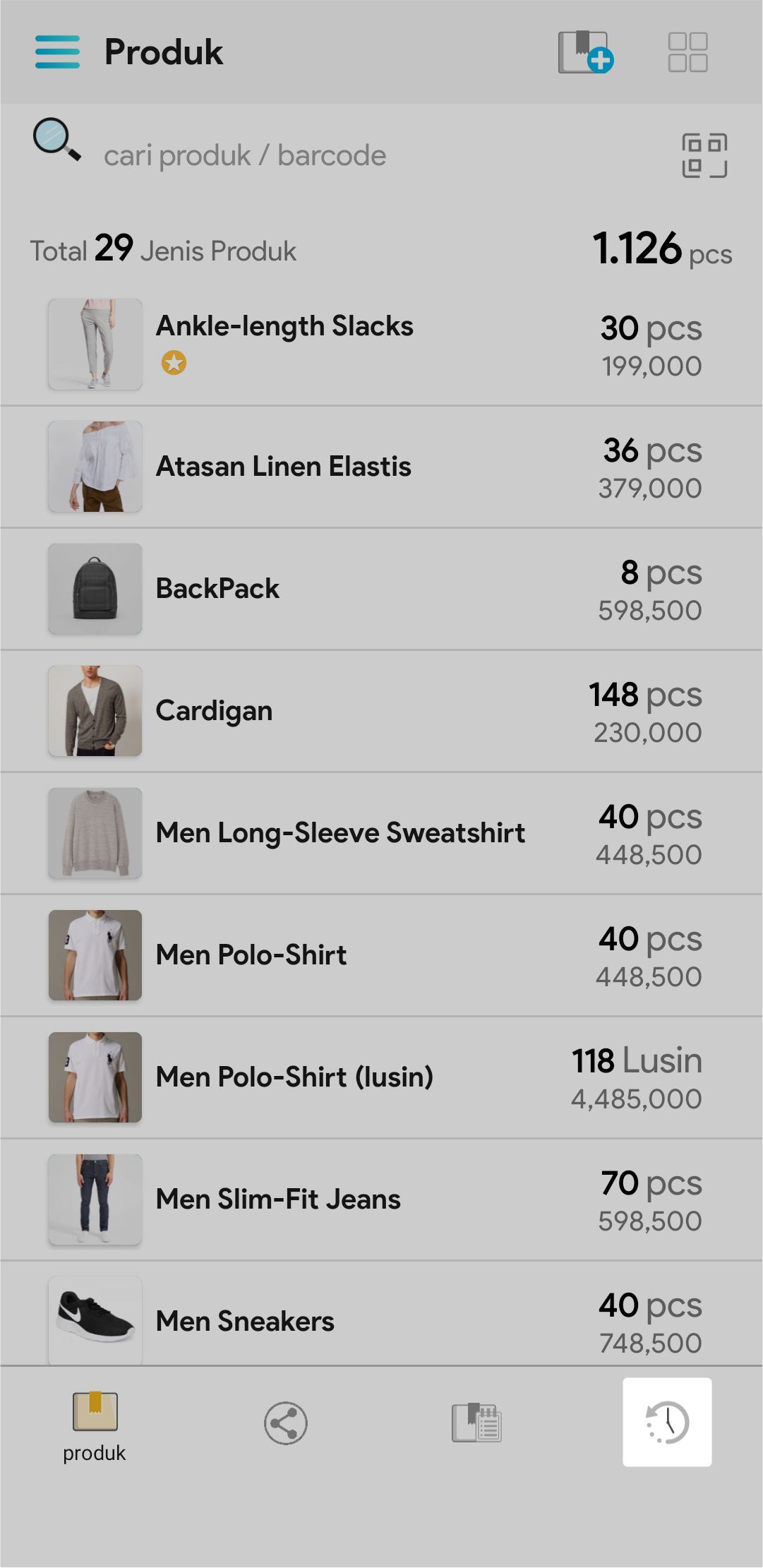 3. Masukkan Nama Produk yang ingin disesuaikan pada kolom pencarian atau gunakan pencarian barcode atau klik tombol Ekspor untuk mengekspor data ke file excel