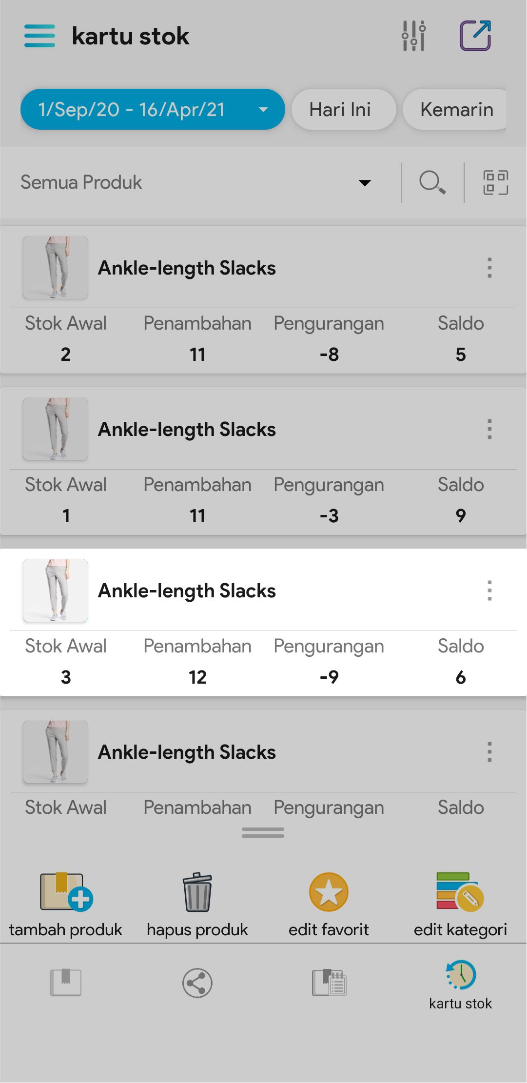 2. Pilih Kartu Stok