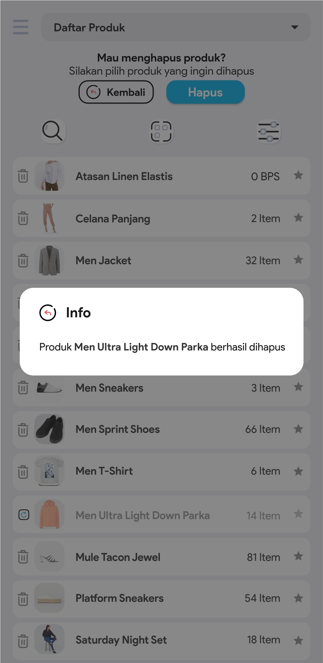 Jika Anda sudah yakin untuk menghapus produk ini, klik button Hapus