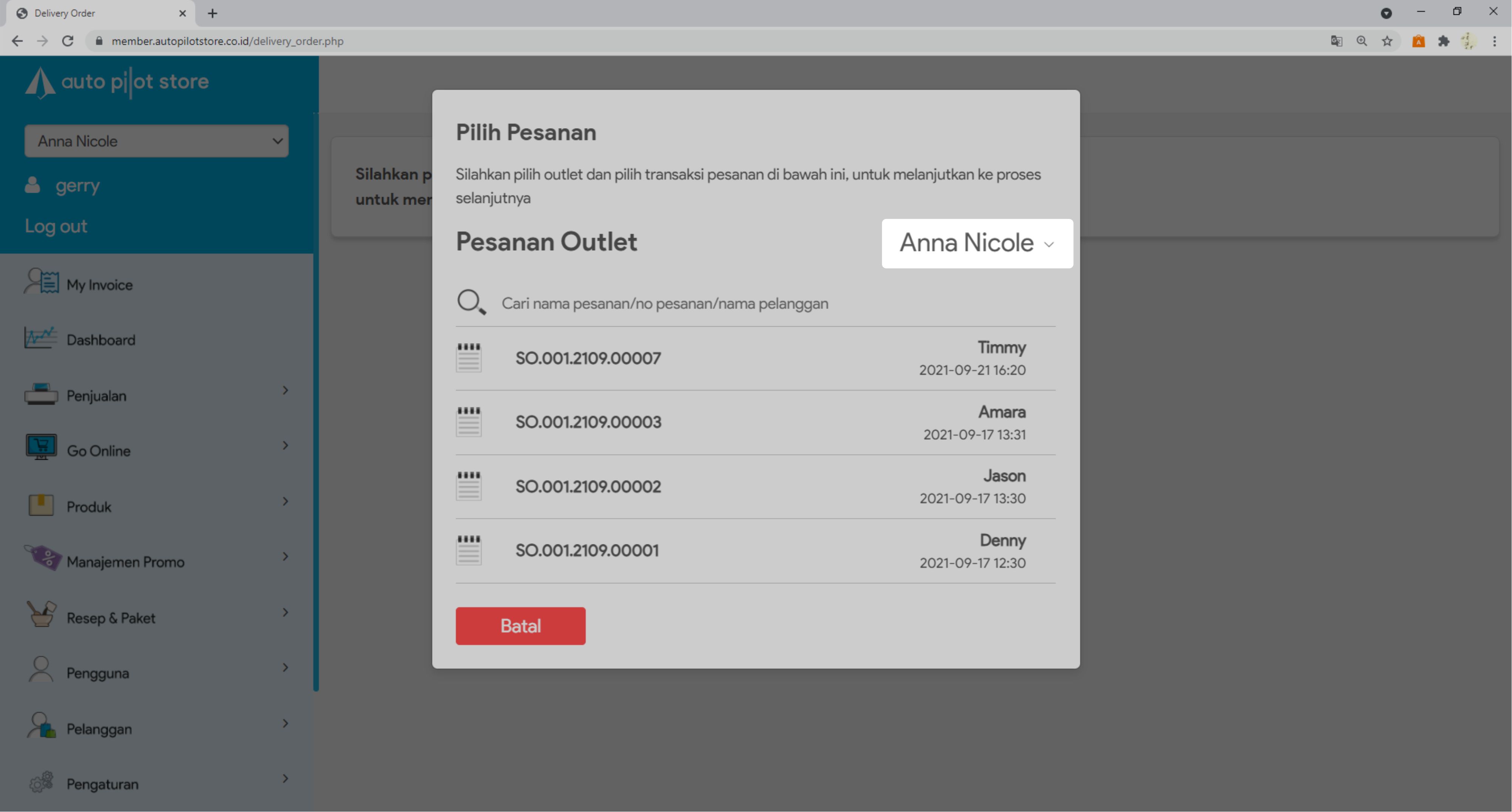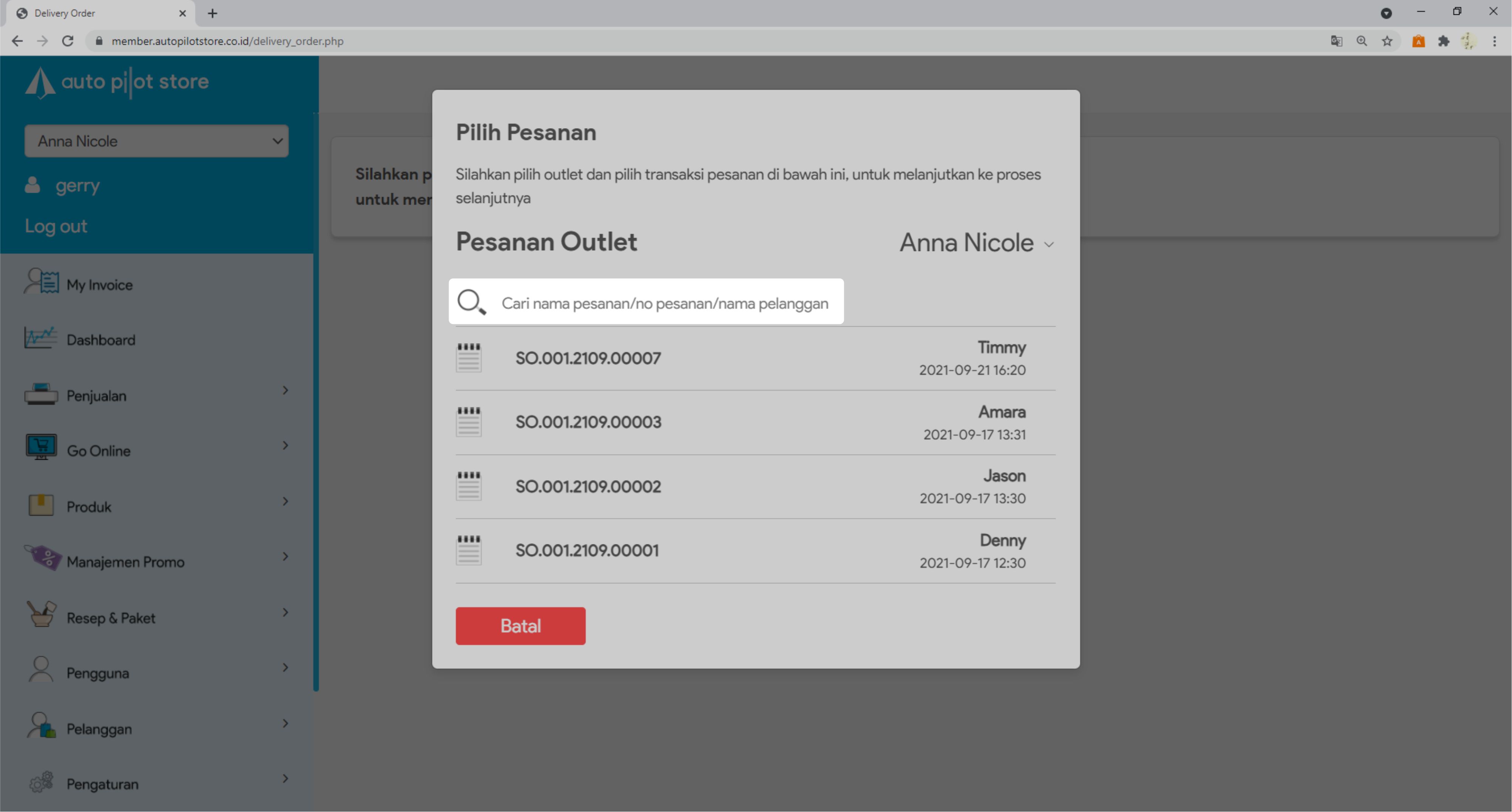 5. Pilih outlet yang mau Anda buat delivery ordernya