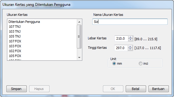 4. Tambahkan Ukuran Label Baru Pada Kolom Nama Ukuran Kertas