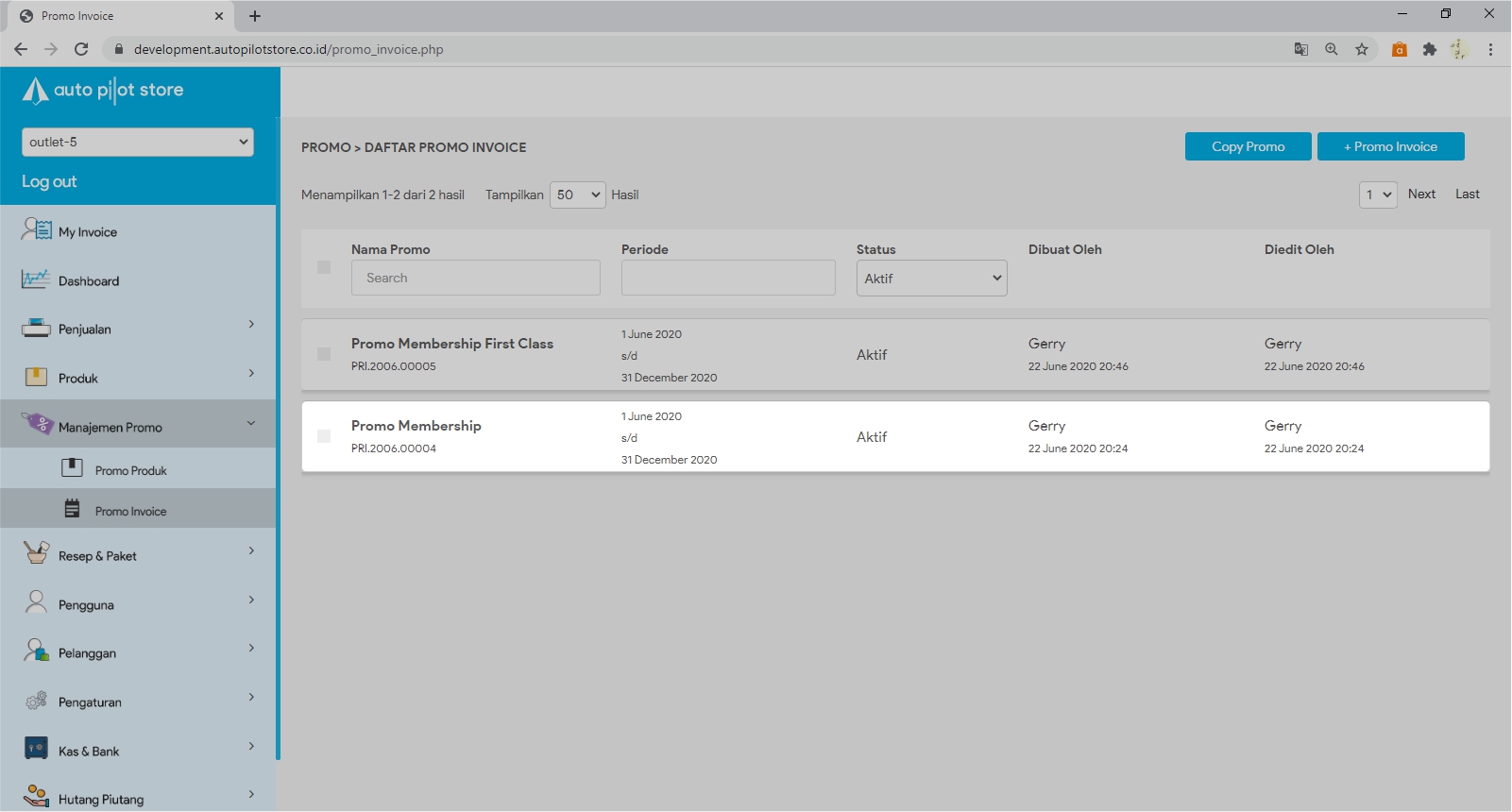 2. Pilih Sub Menu Promo Invoice