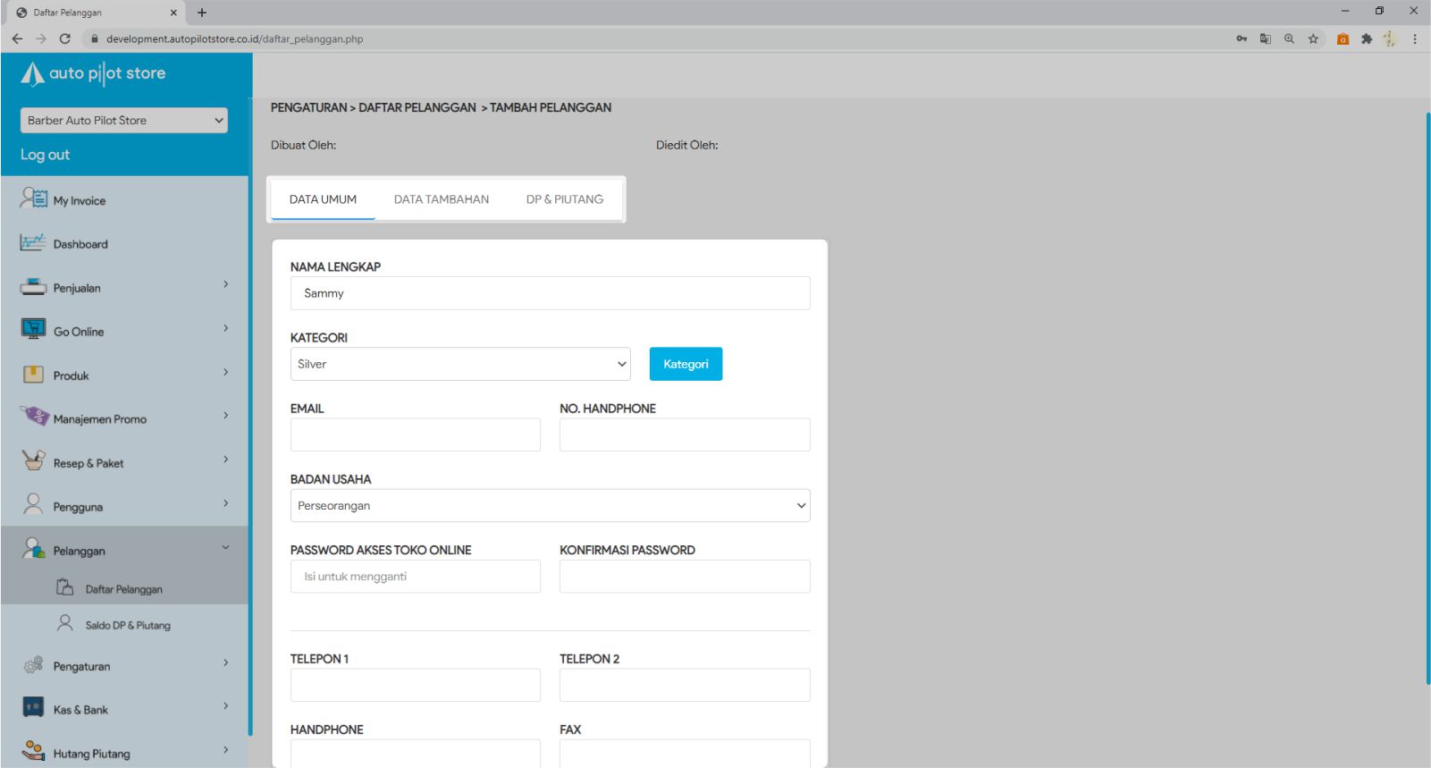 3. Pilih icon Tambah Pelanggan