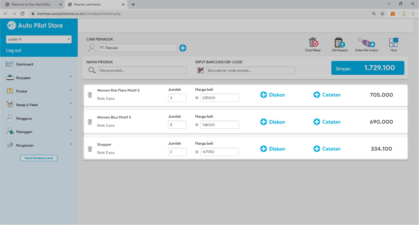 4. Masukkan nama pesanan, no pesanan atau nama pemasok pada kolom pencarian