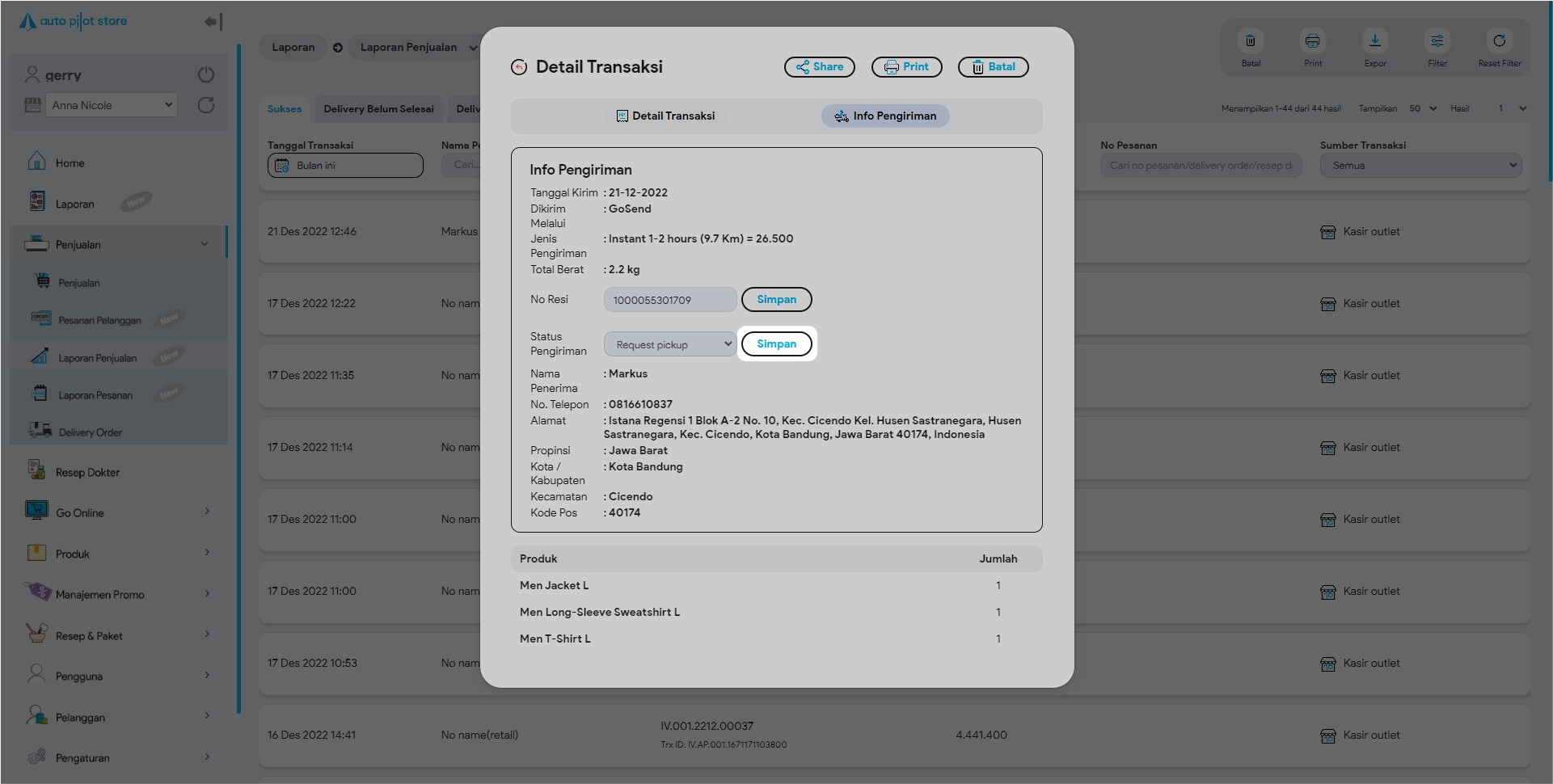 4. Pilih transaksi mana yang ingin Anda update status ekspedisinya.