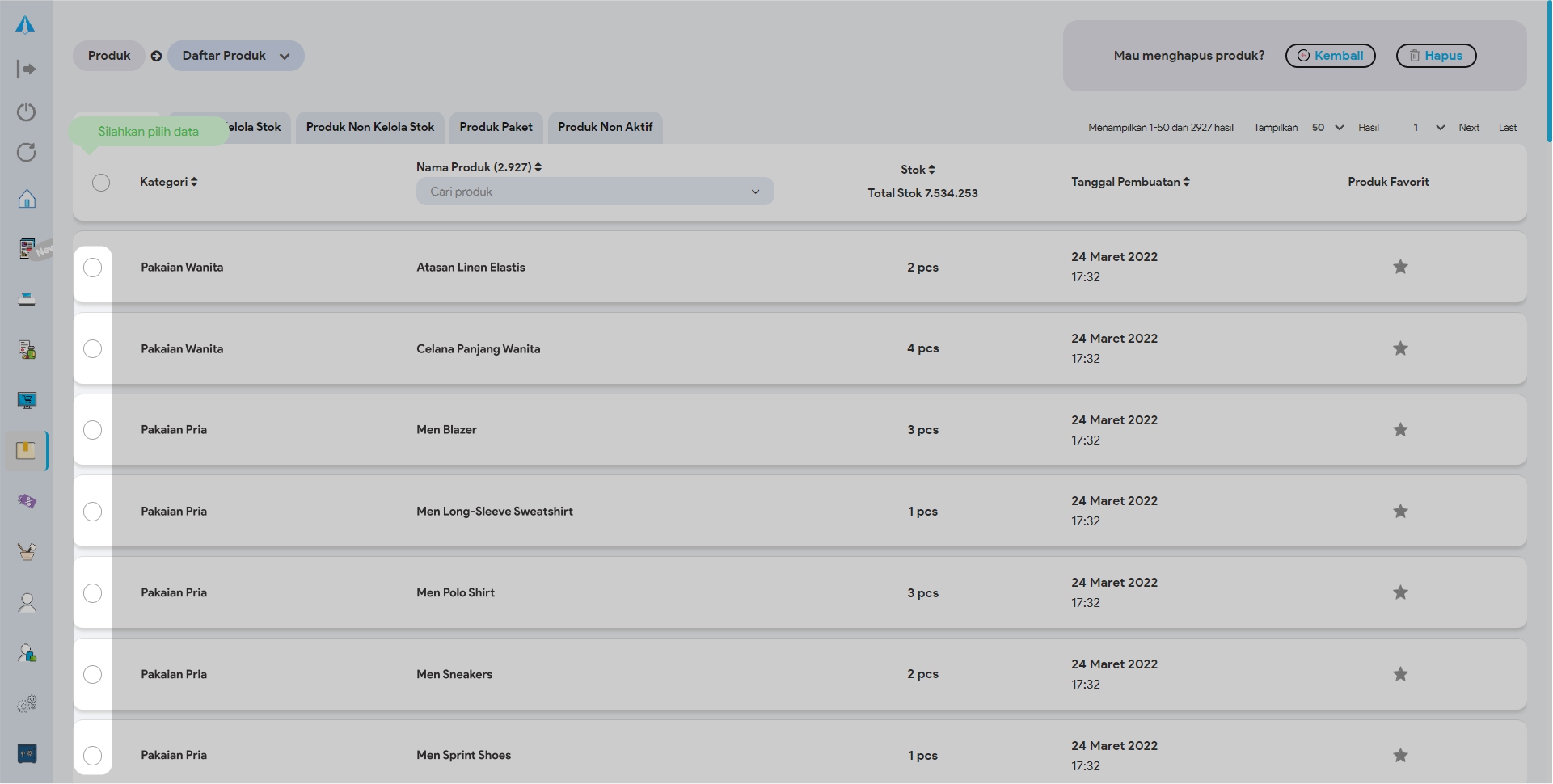3. Klik checklist pada bagian depan produk yang akan dihapus.