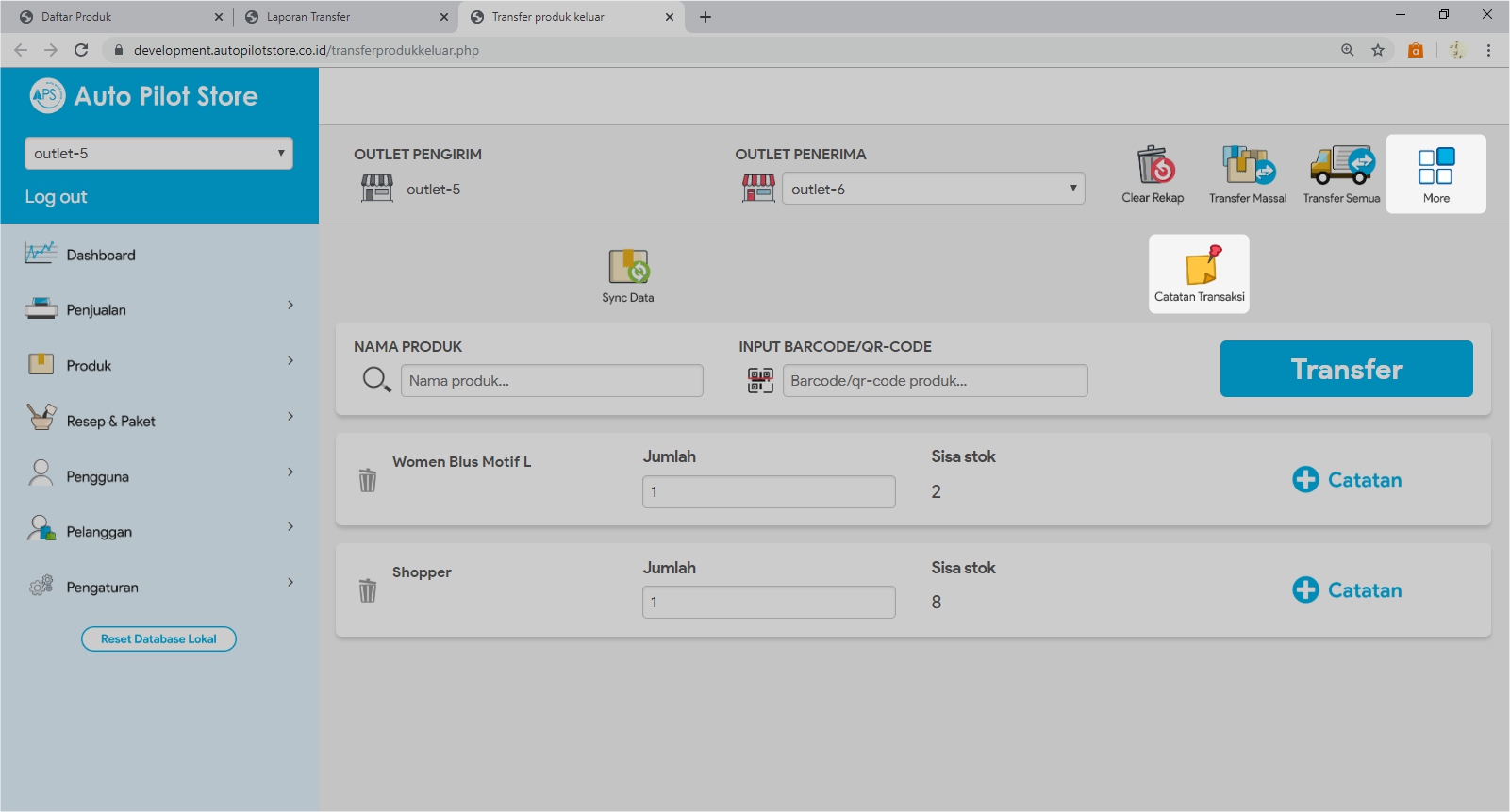 Transfer Baru bila ingin melakukan transfer produk keluar yang lain