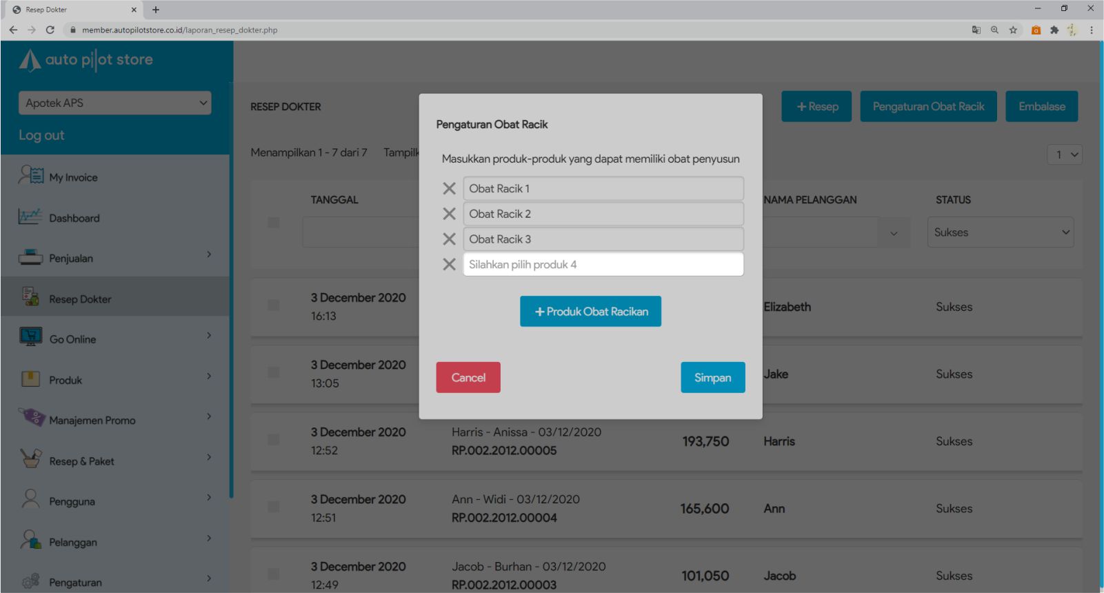 Fasilitas pengaturan obat racik berguna untuk mendaftarkan produk-produk mana yang dikategorikan sebagai obat racik, sehingga mempercepat proses pembuatan resep dokter.