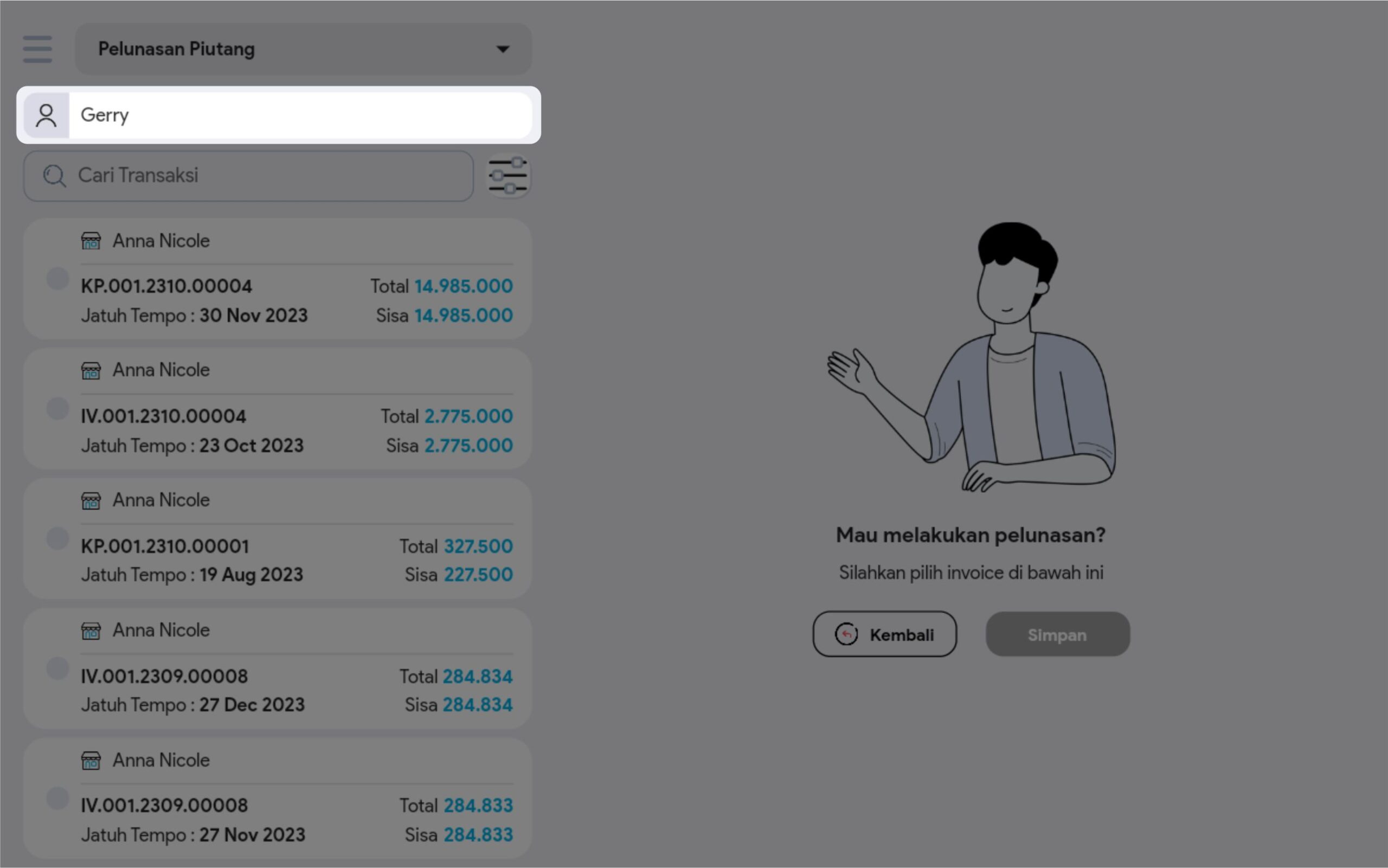 6. Pilih transaksi yang diinginkan, kemudian klik Simpan