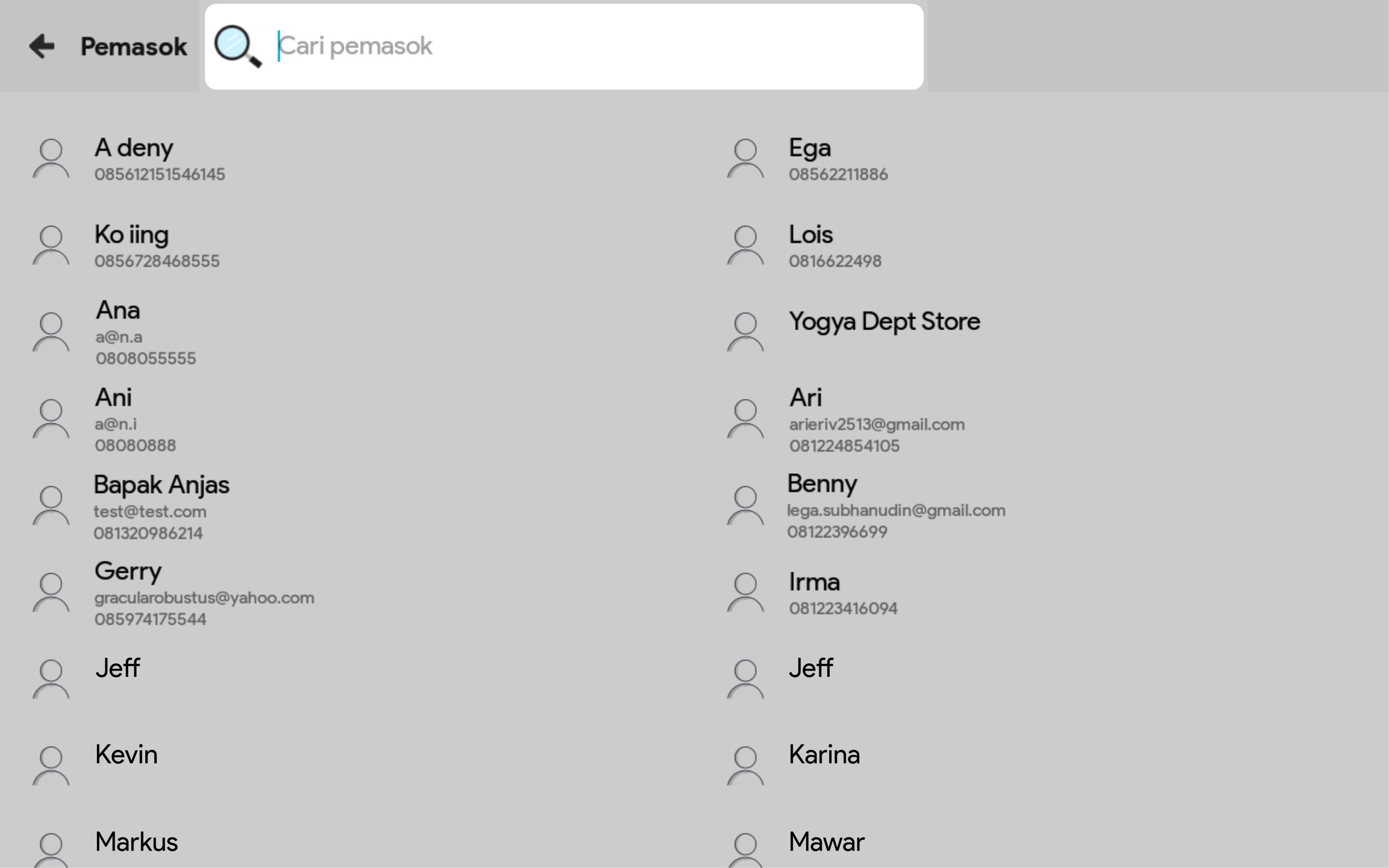 Cari nama, nomor telepon atau email di kolom pencarian