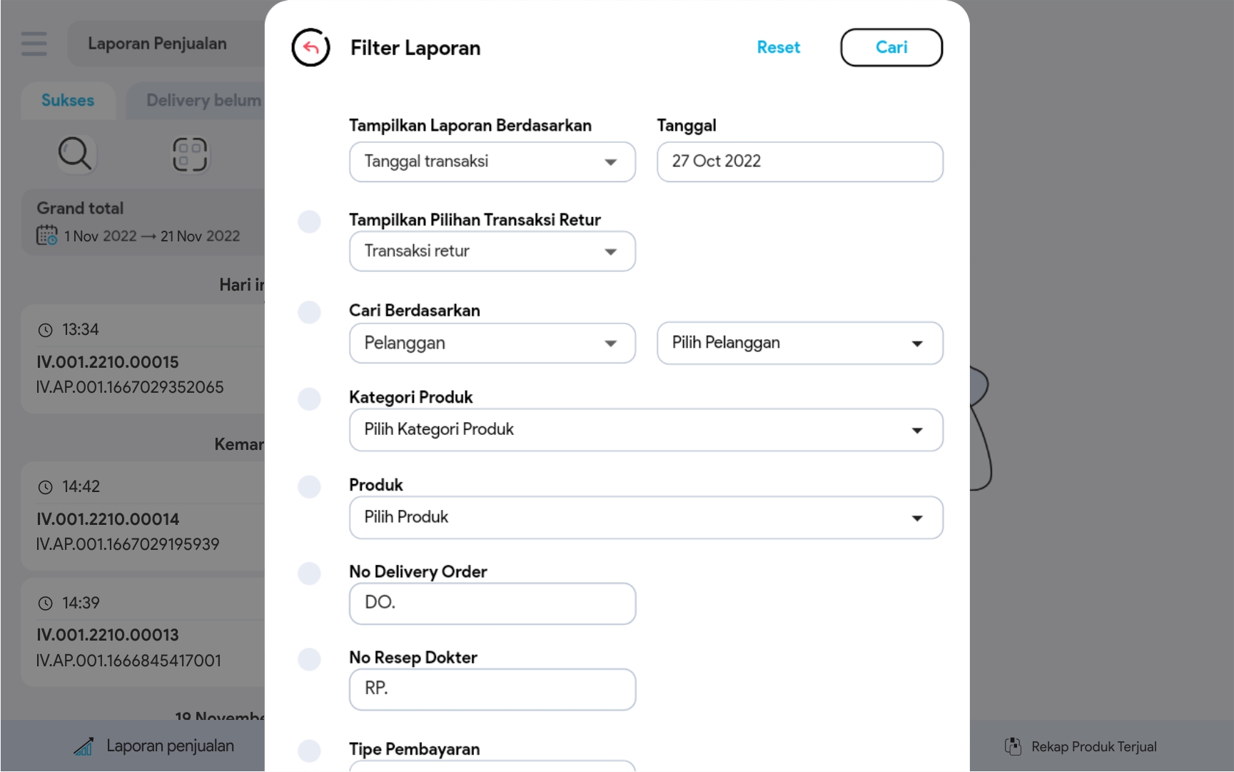 5. Pilih Filter untuk melakukan pencarian data penjualan yang lebih terperinci.