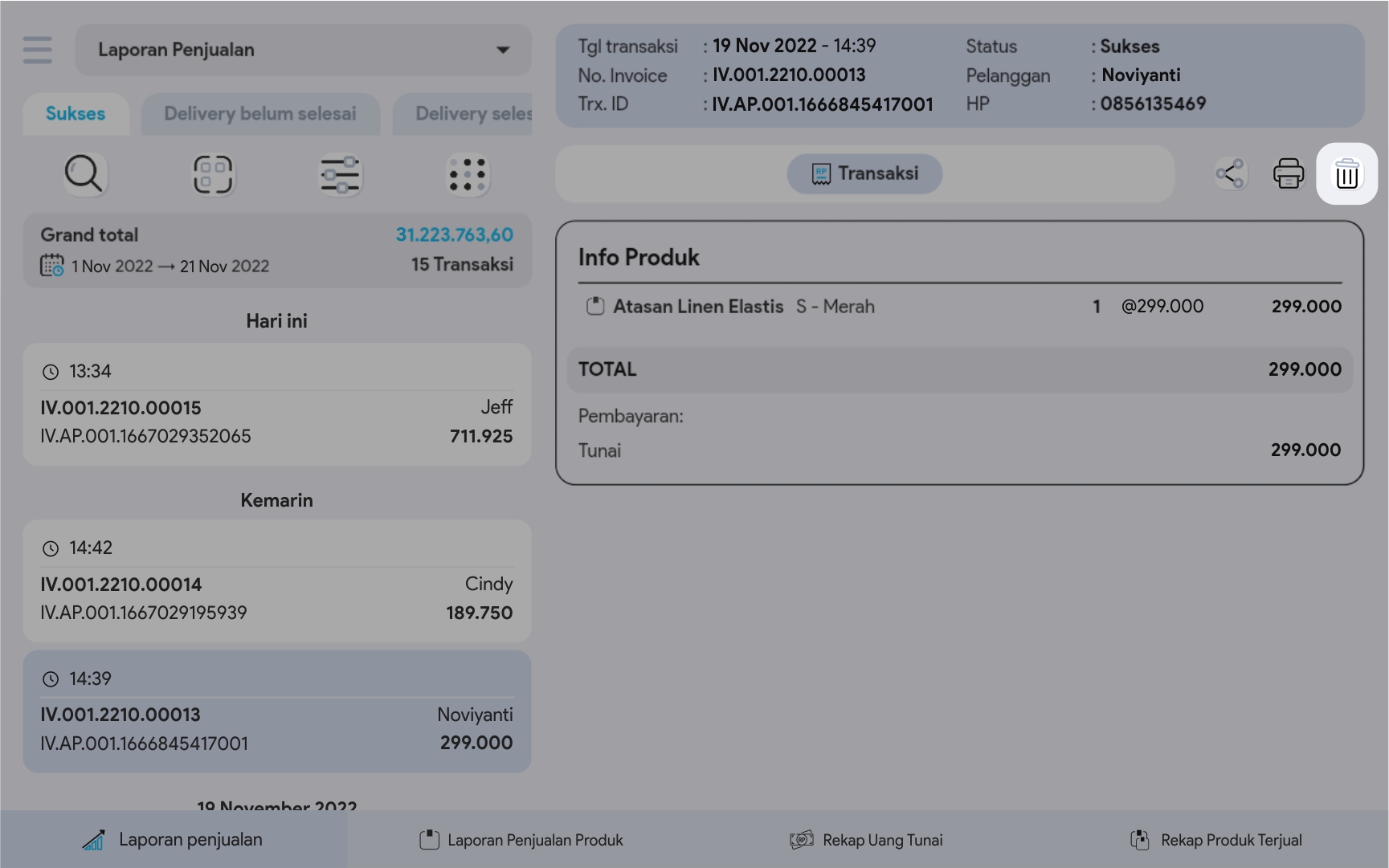 6. Status transaksi penjualan akan berubah menjadi Batal