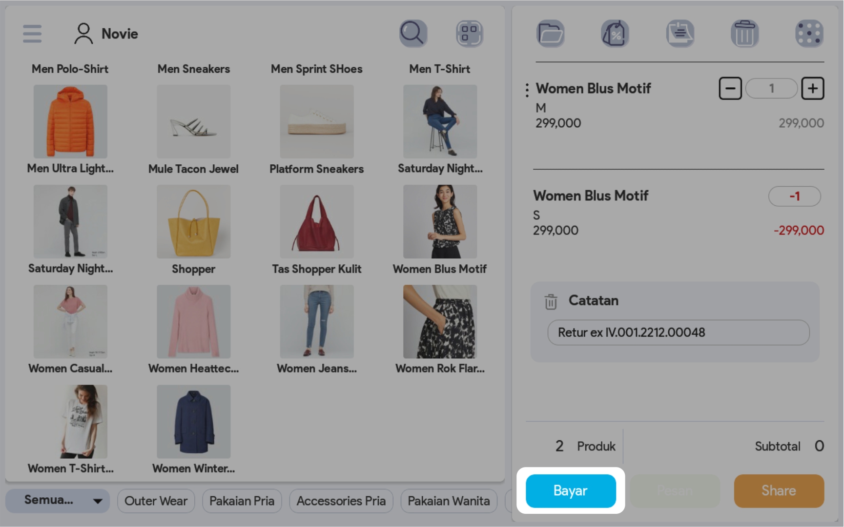 10. Pilih Bayar dan selesaikan kekurangan atau kelebihan akibat selisih harga produk bila ada. Prosedur nya sama dengan pembayaran di fasilitas kasir.