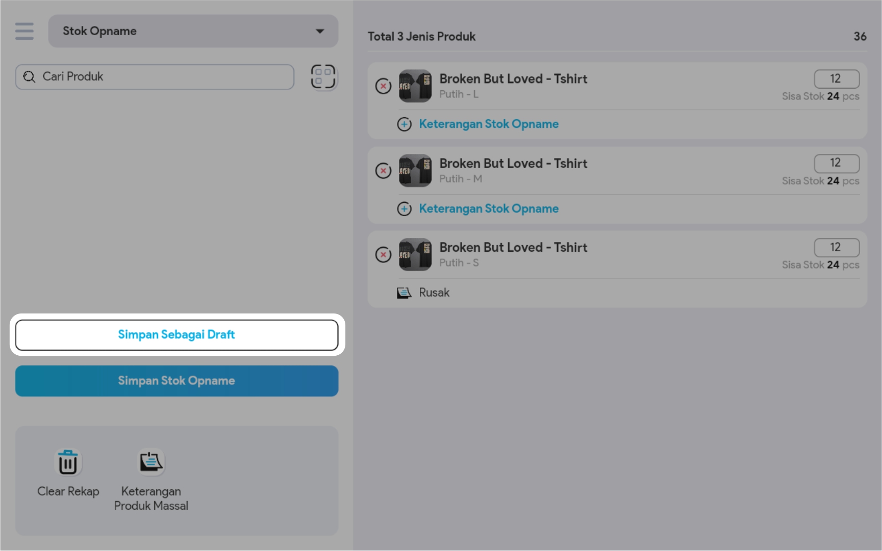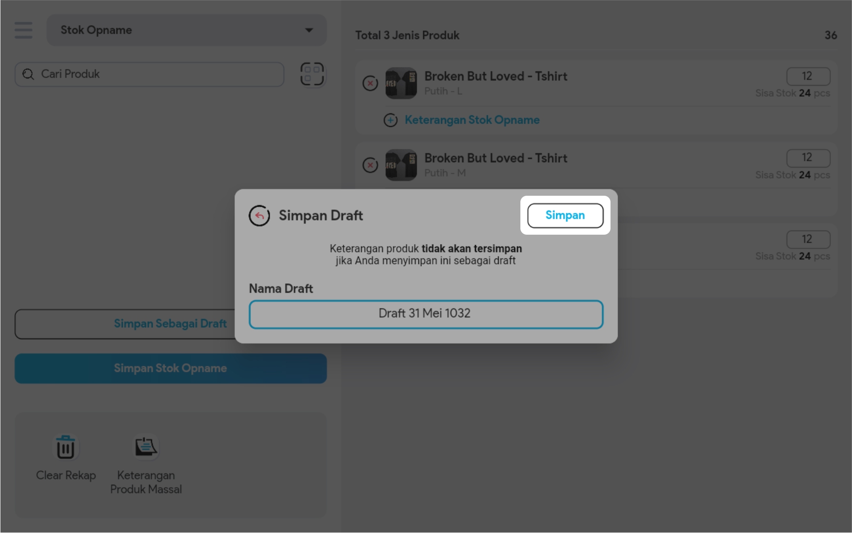 4. Anda bisa input jumlah stok yang sudah Anda hitung pada kolom isian.