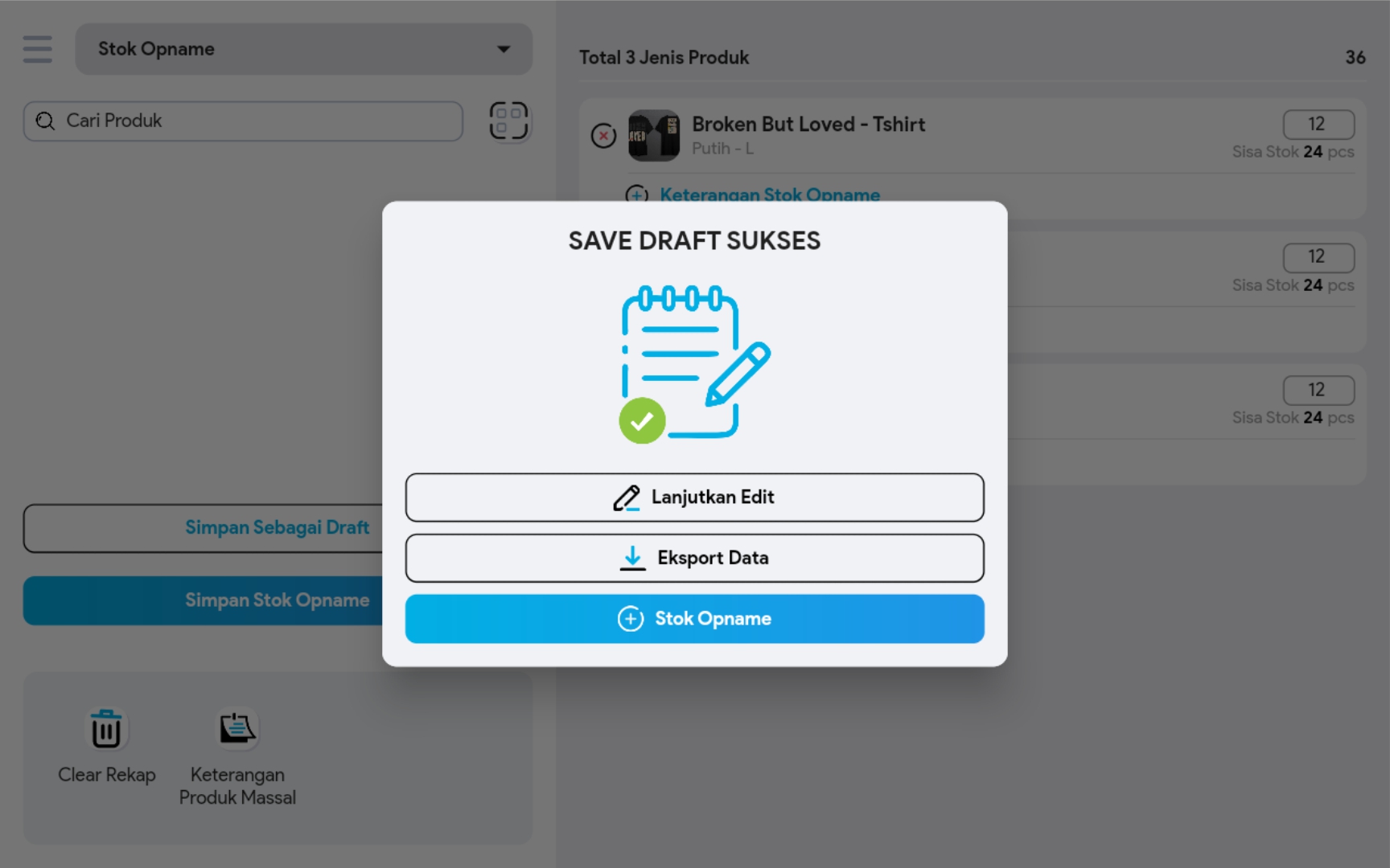 9. Klik Lanjutkan Edit untuk melanjutkan pengeditan draft stok opname