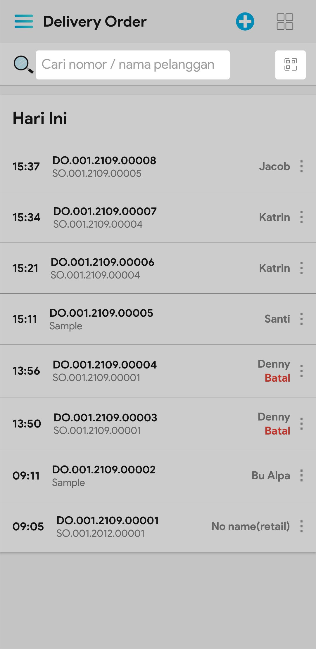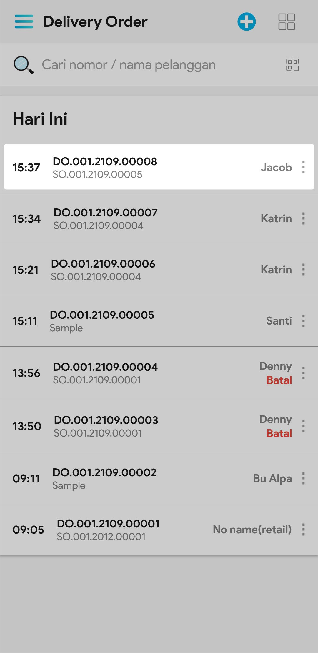 2. Masukkan nomor delivery order / nama pelanggan pada kolom pencarian untuk mencari delivery order tertentu, atau gunakan barcode untuk mempermudah pencarian