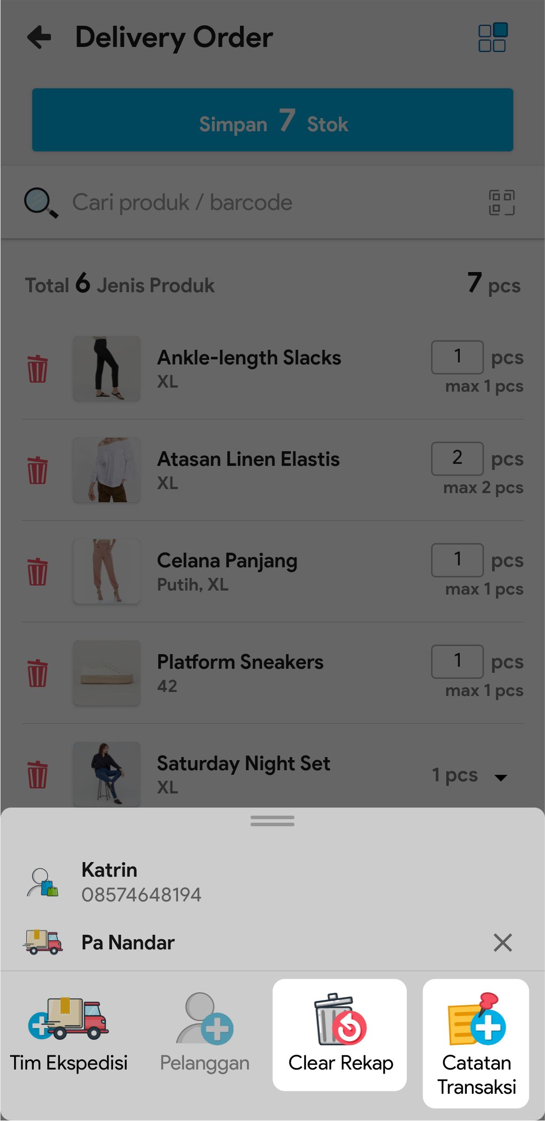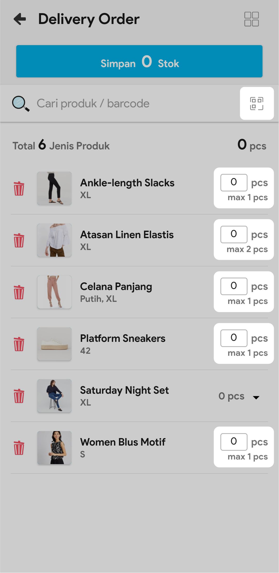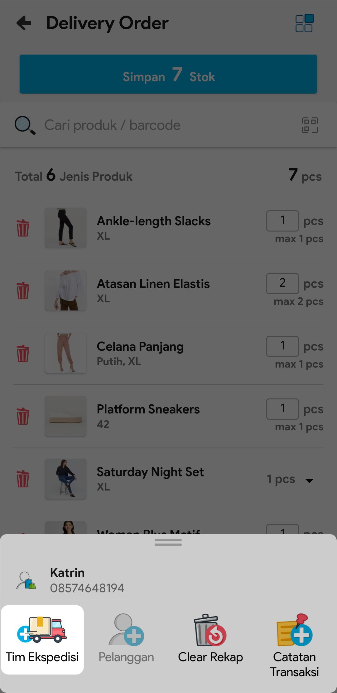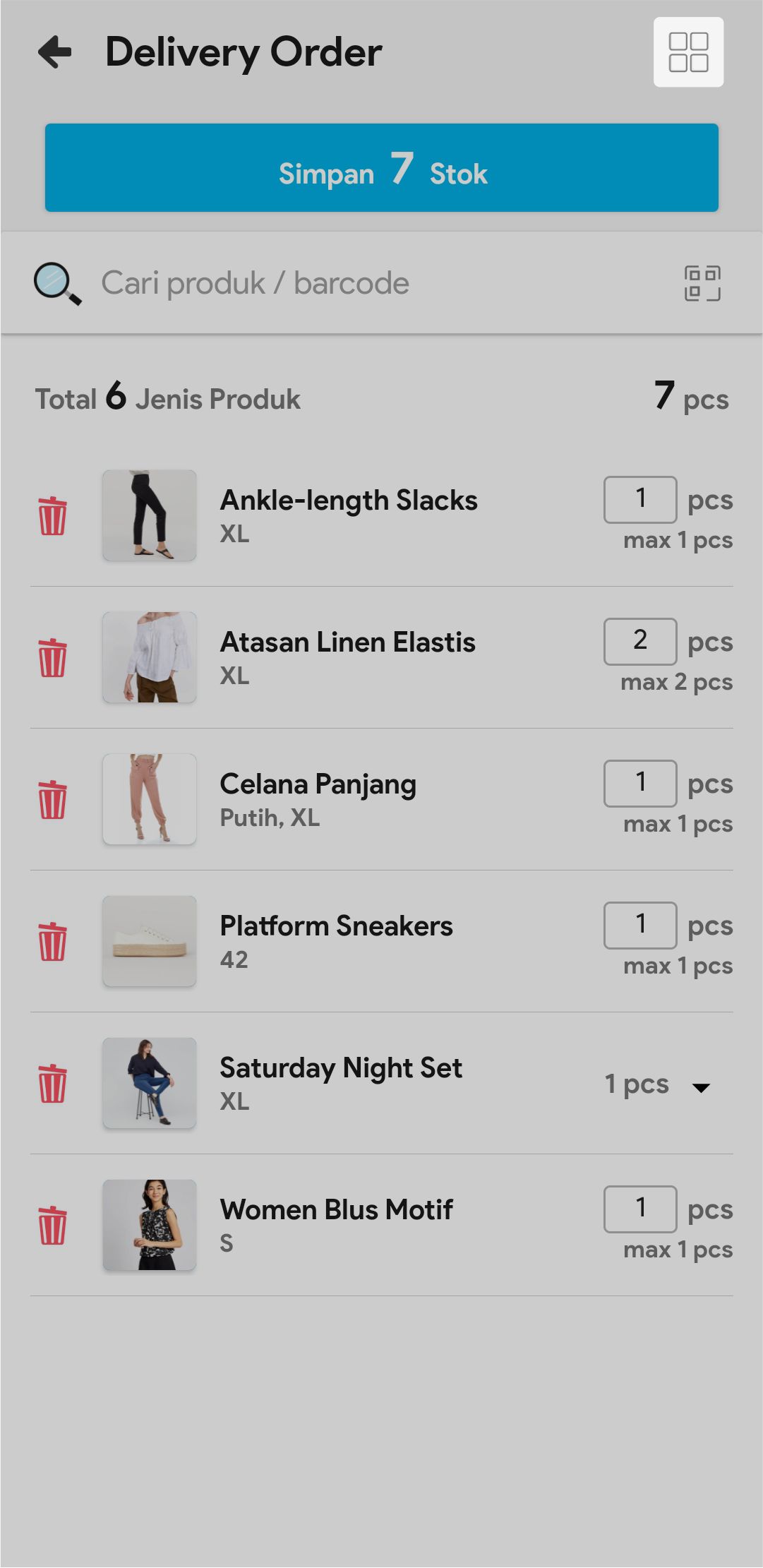7. Masukkan jumlah stok yang akan dikirim atau scan barcode produk untuk menambah stok yang akan dikirim.