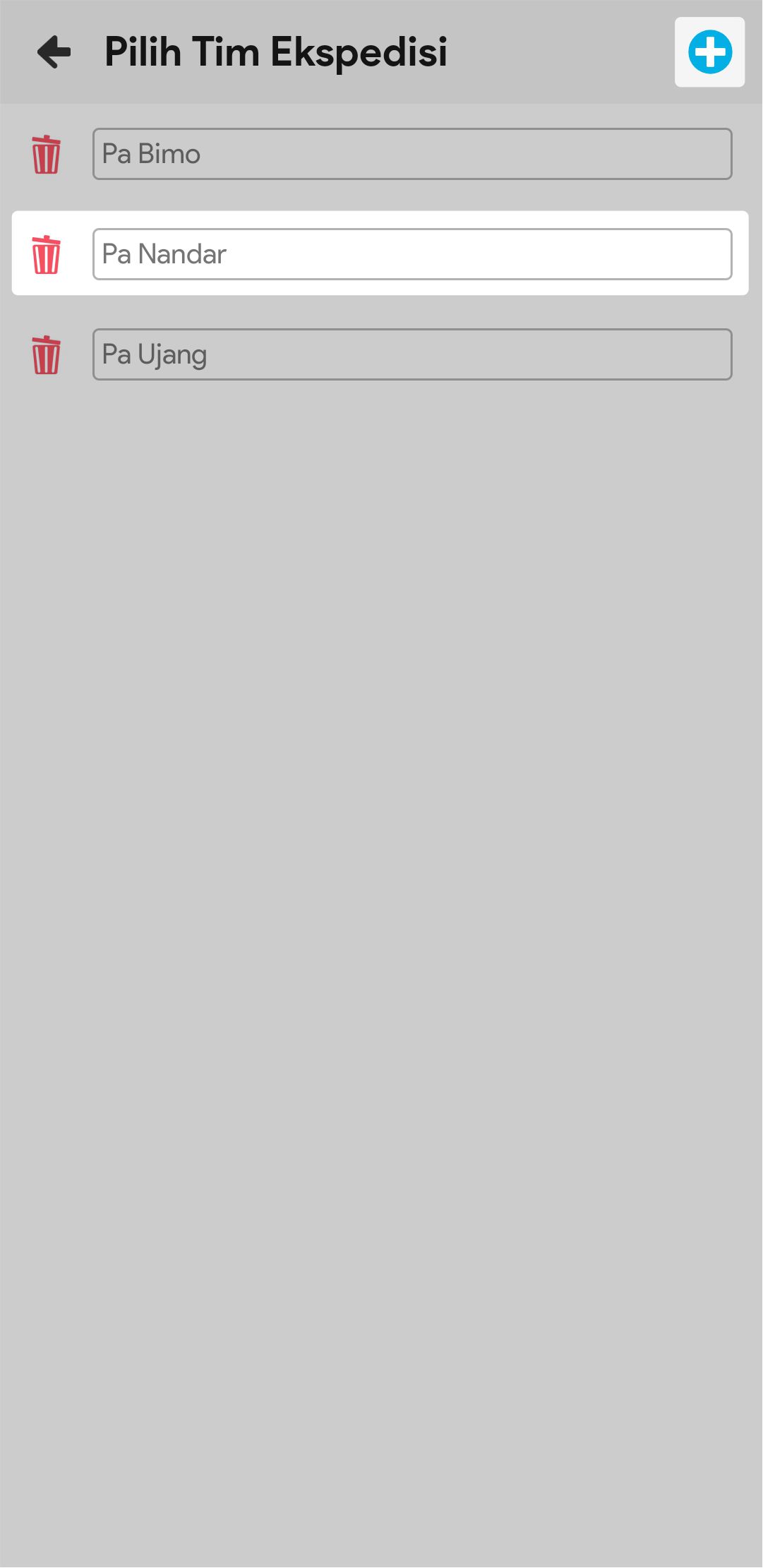 10. Klik + Anggota Tim, lalu pilih tim ekspedisi yang sudah terdaftar. Anda bisa menambah Tim Ekspedisi dengan mengklik icon plus