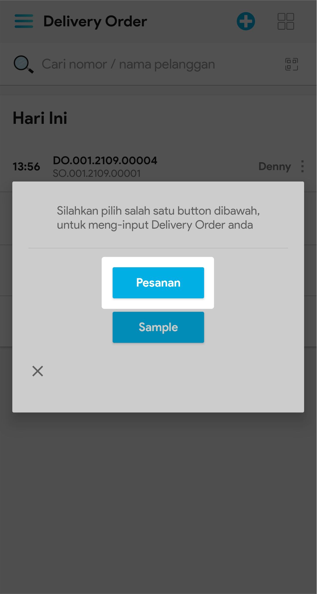 2. Klik icon Tambah, untuk membuat delivery order baru