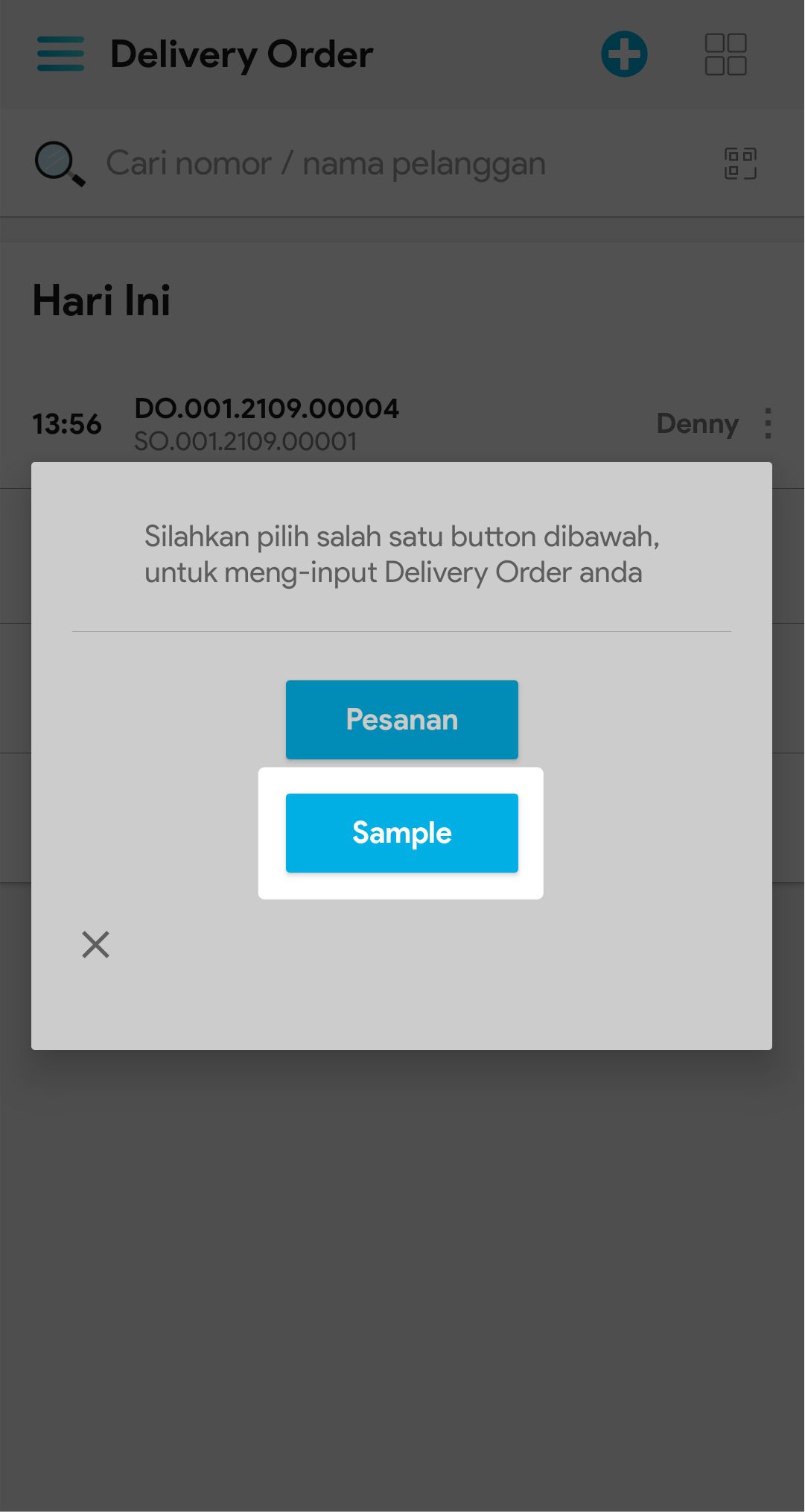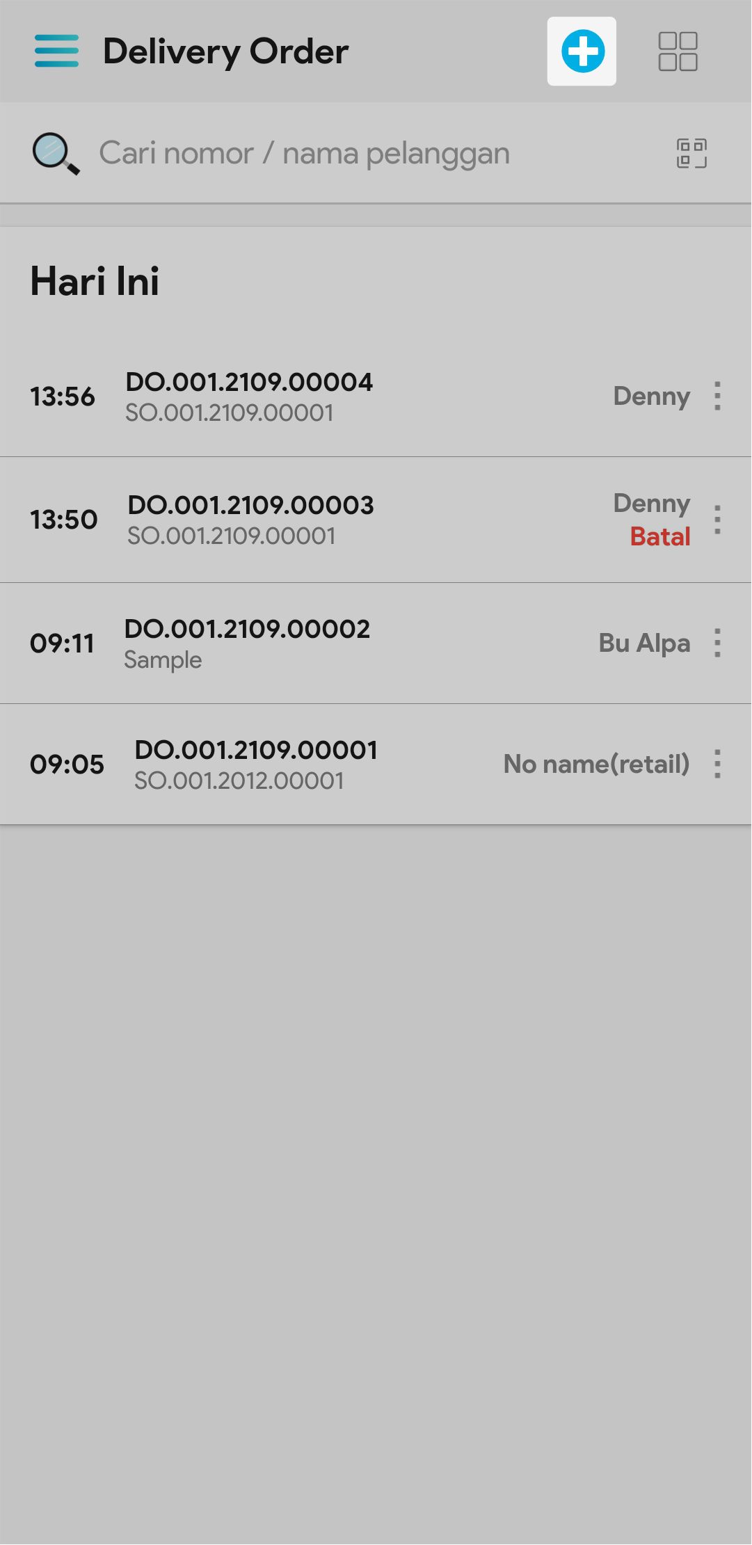 2. Klik icon Tambah, untuk membuat delivery order baru