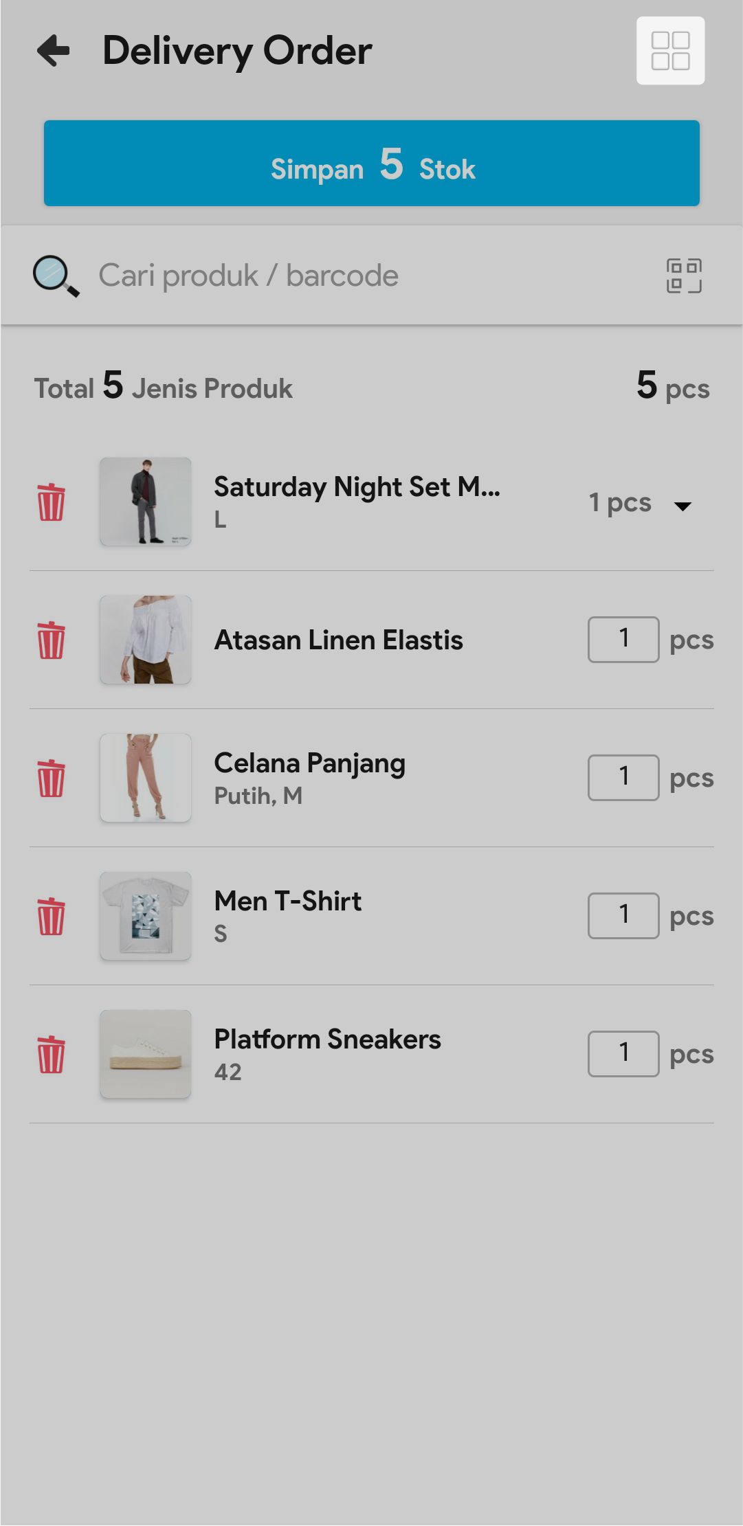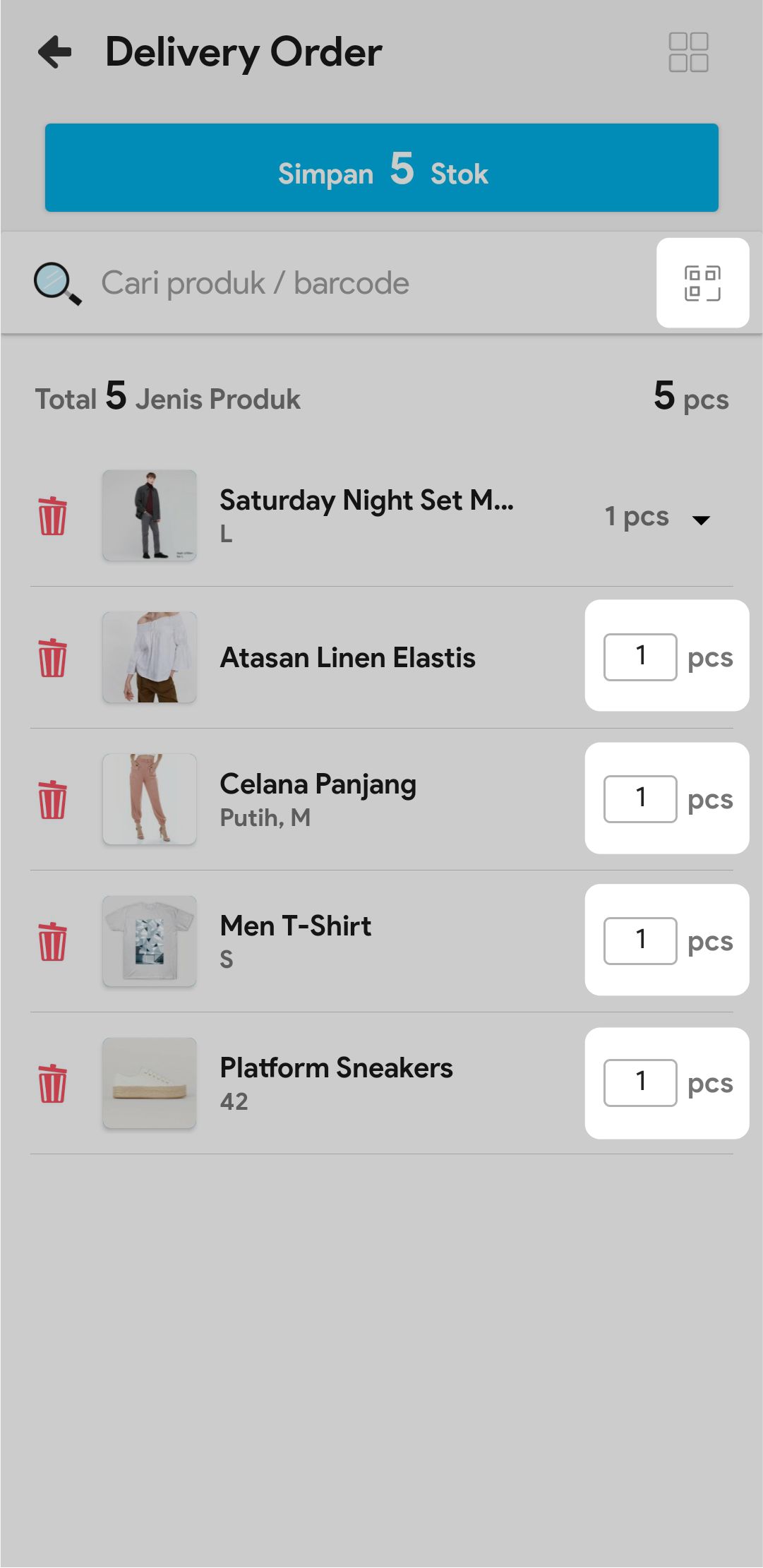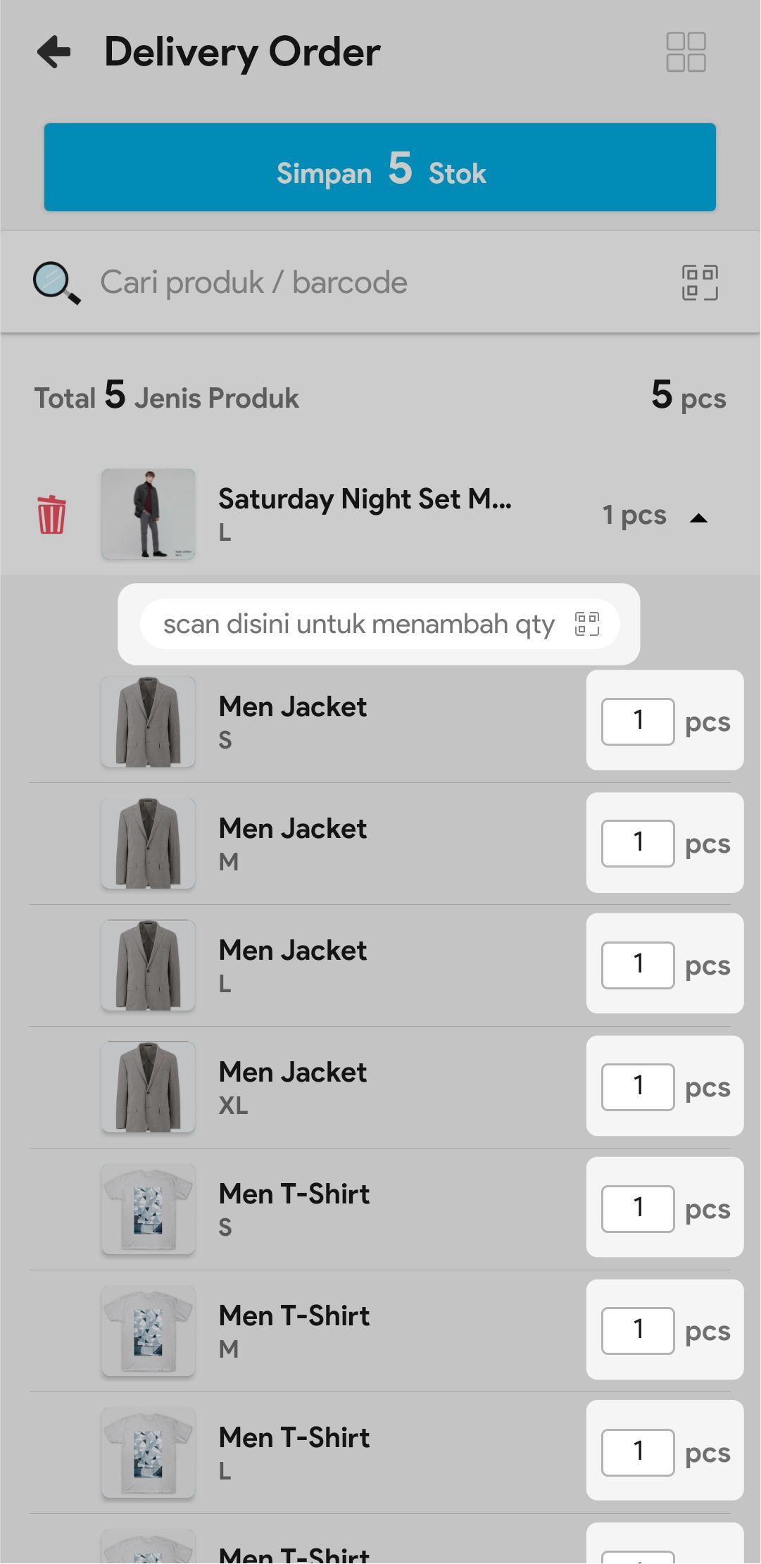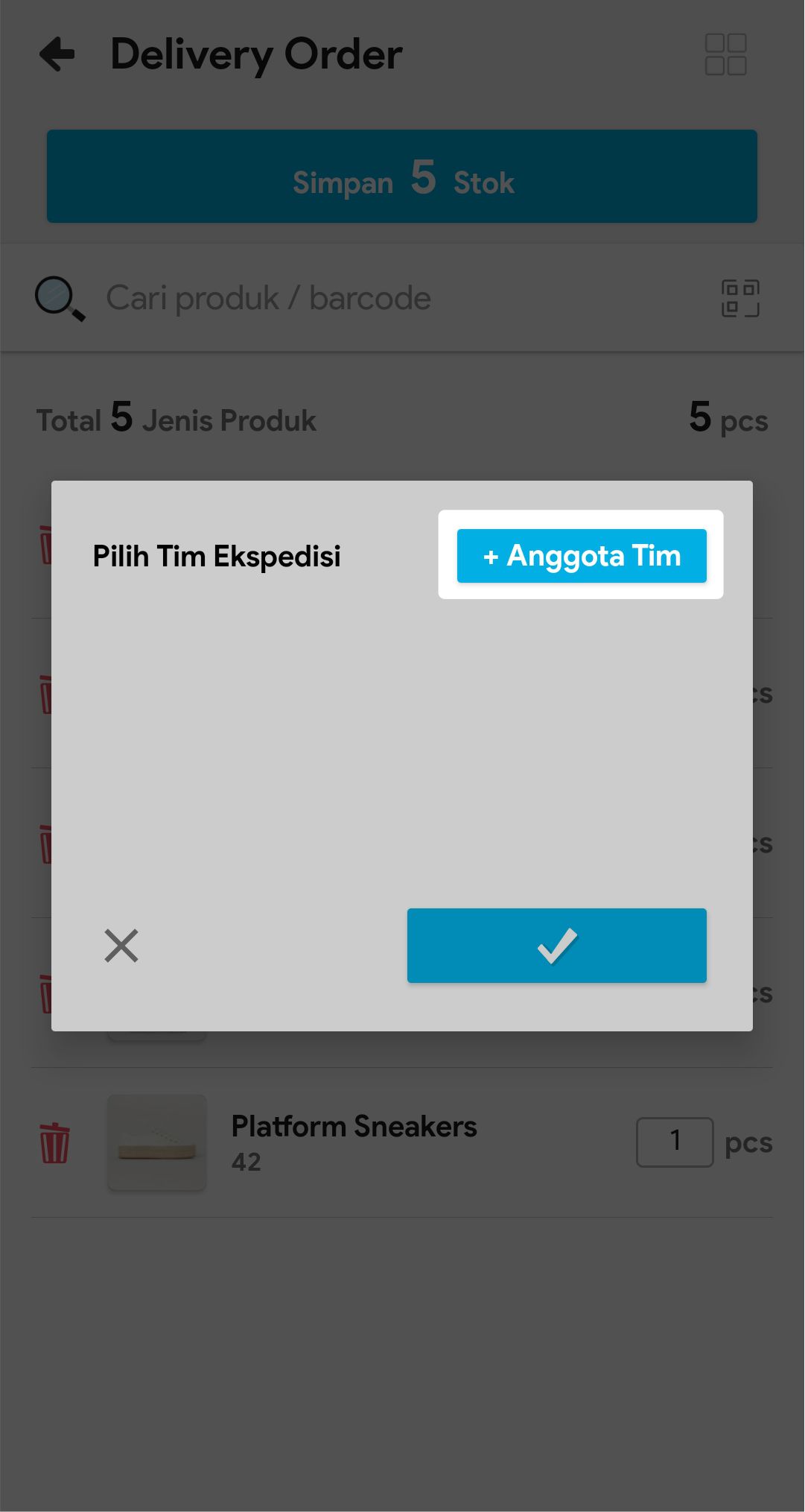7. Masukkan jumlah stok yang akan dikirim atau scan barcode produk untuk menambah stok yang akan dikirim.