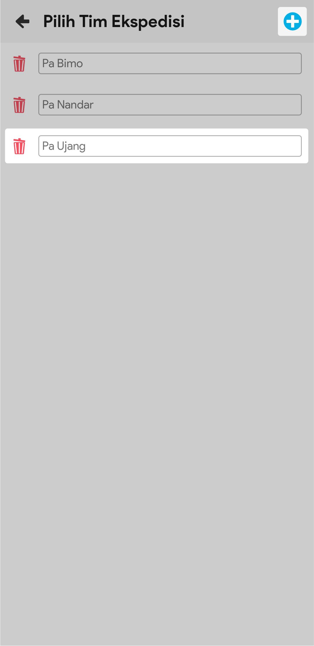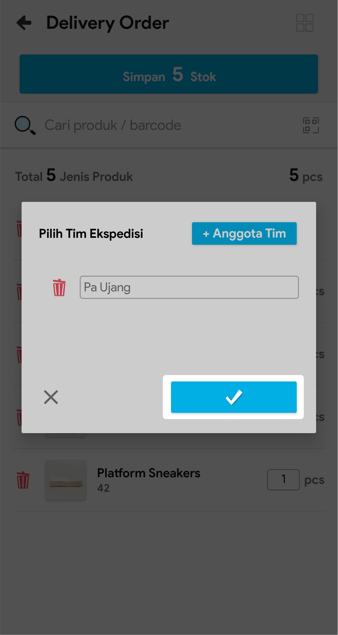10. Klik + Anggota Tim, lalu pilih tim ekspedisi yang sudah terdaftar. Anda bisa menambah Tim Ekspedisi dengan mengklik icon plus