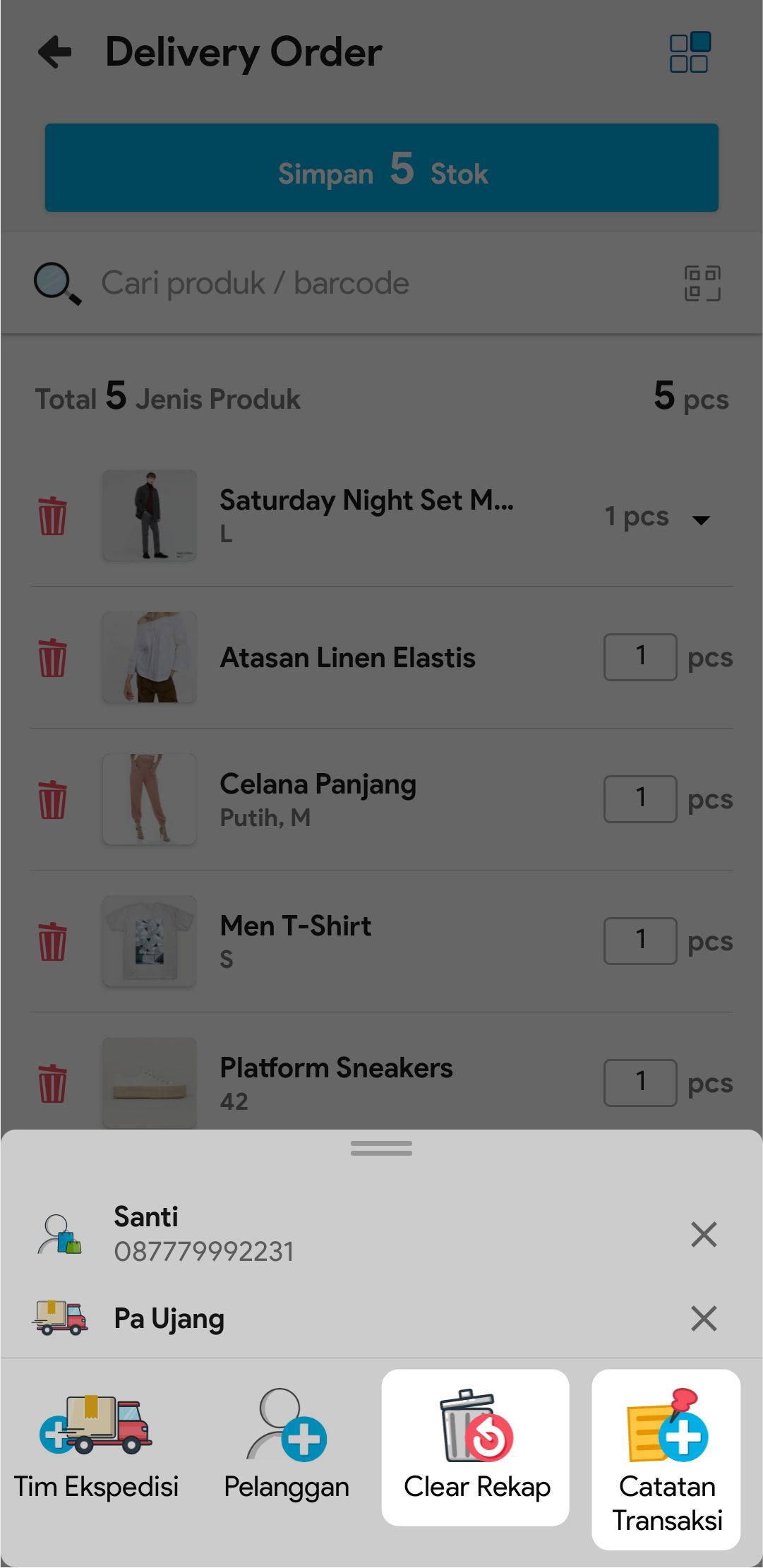 12. Anda bisa melakukan clear rekap jika ingin mengembalikan transaksi ini ke posisi awal dan Anda juga bisa menambahkan catatan transaksi dengan mengklik icon More (nomor 9)