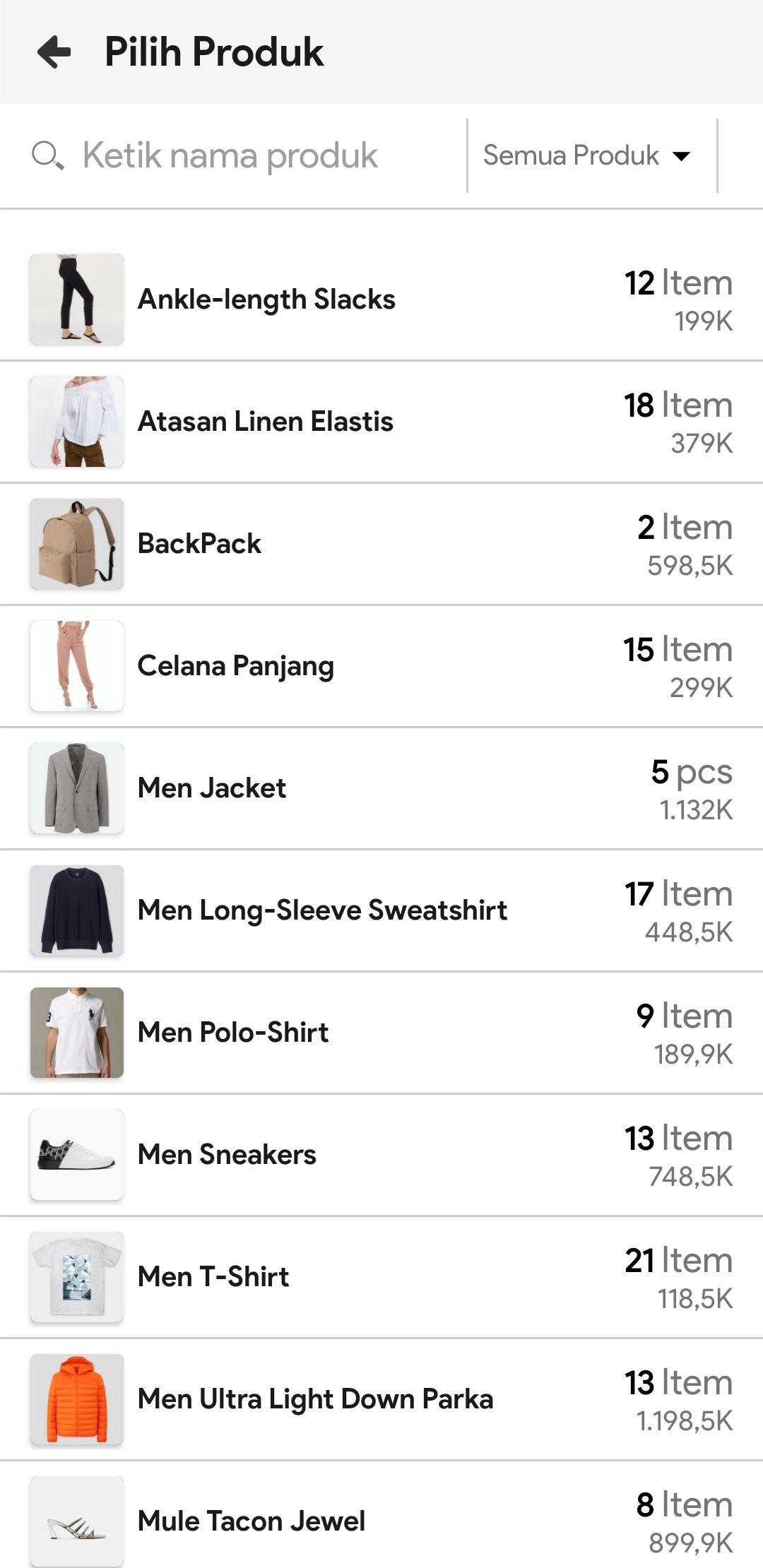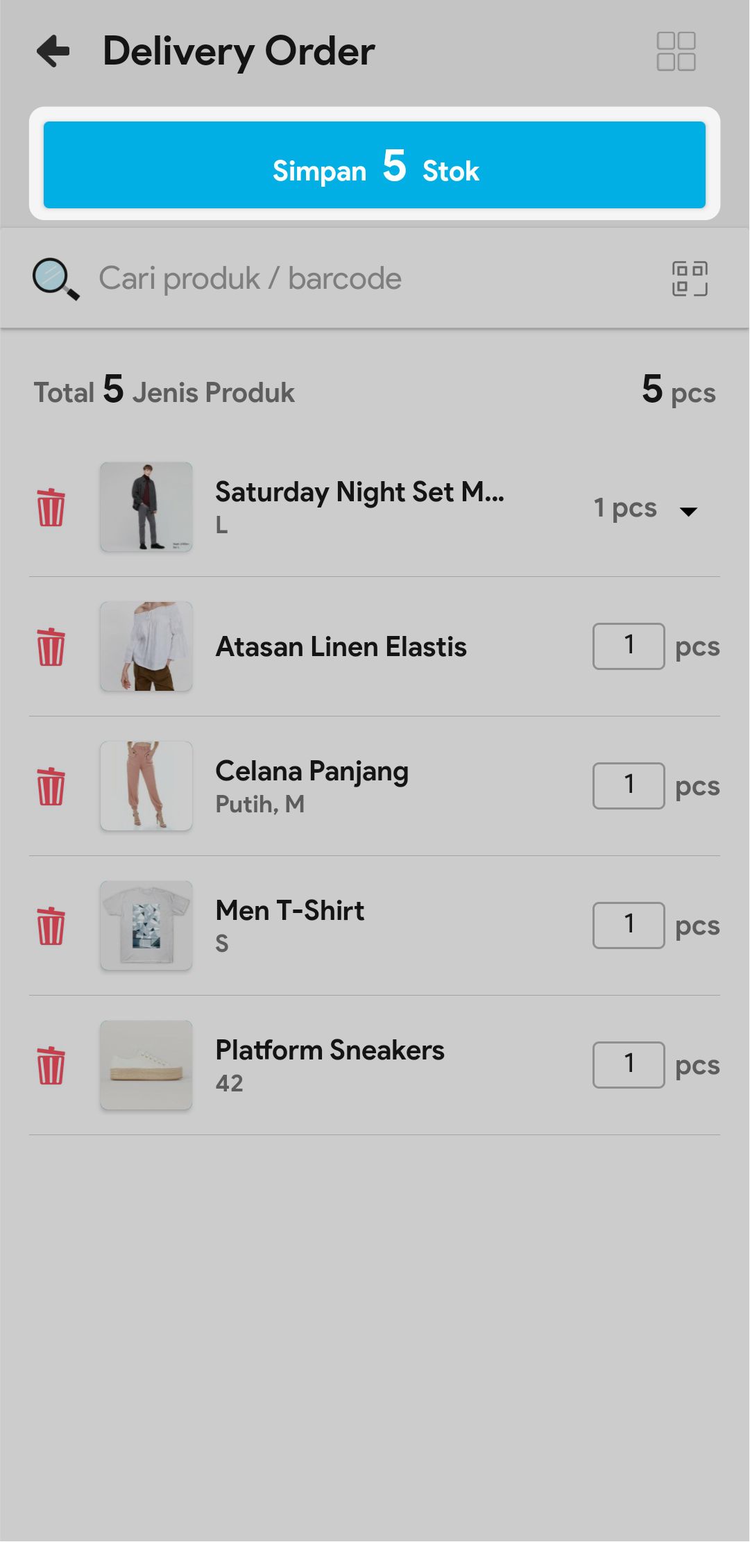 6. Cari Nama Produk atau Barcode Produk, lalu pilih produk yang diinginkan. Atau gunakan barcode produk untuk mempermudah pencarian.
