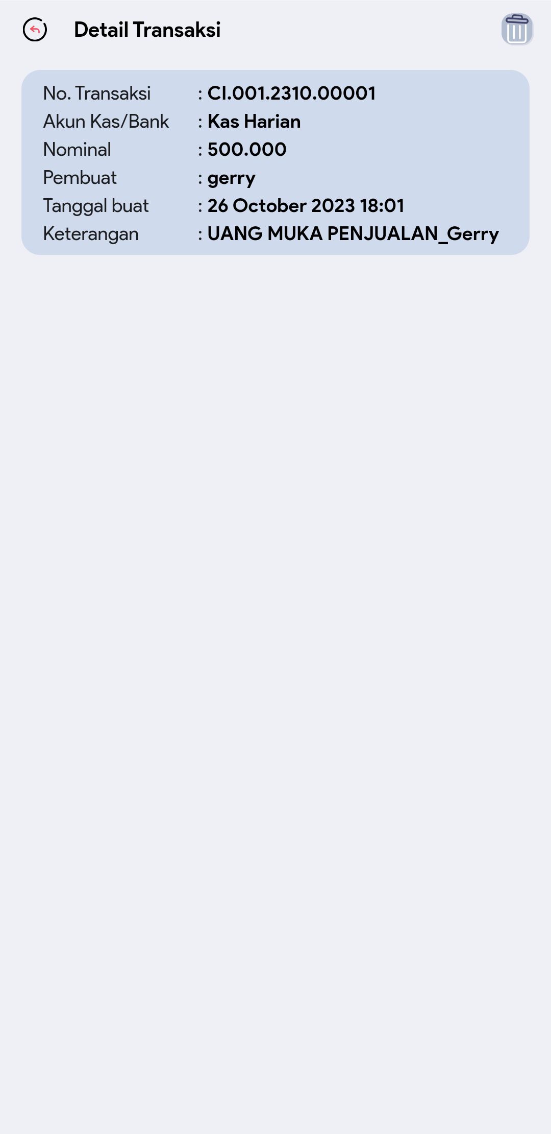 6. Cari dan pilih transaksi pemasukan pengeluaran yang diinginkan untuk melihat informasi lebih detail