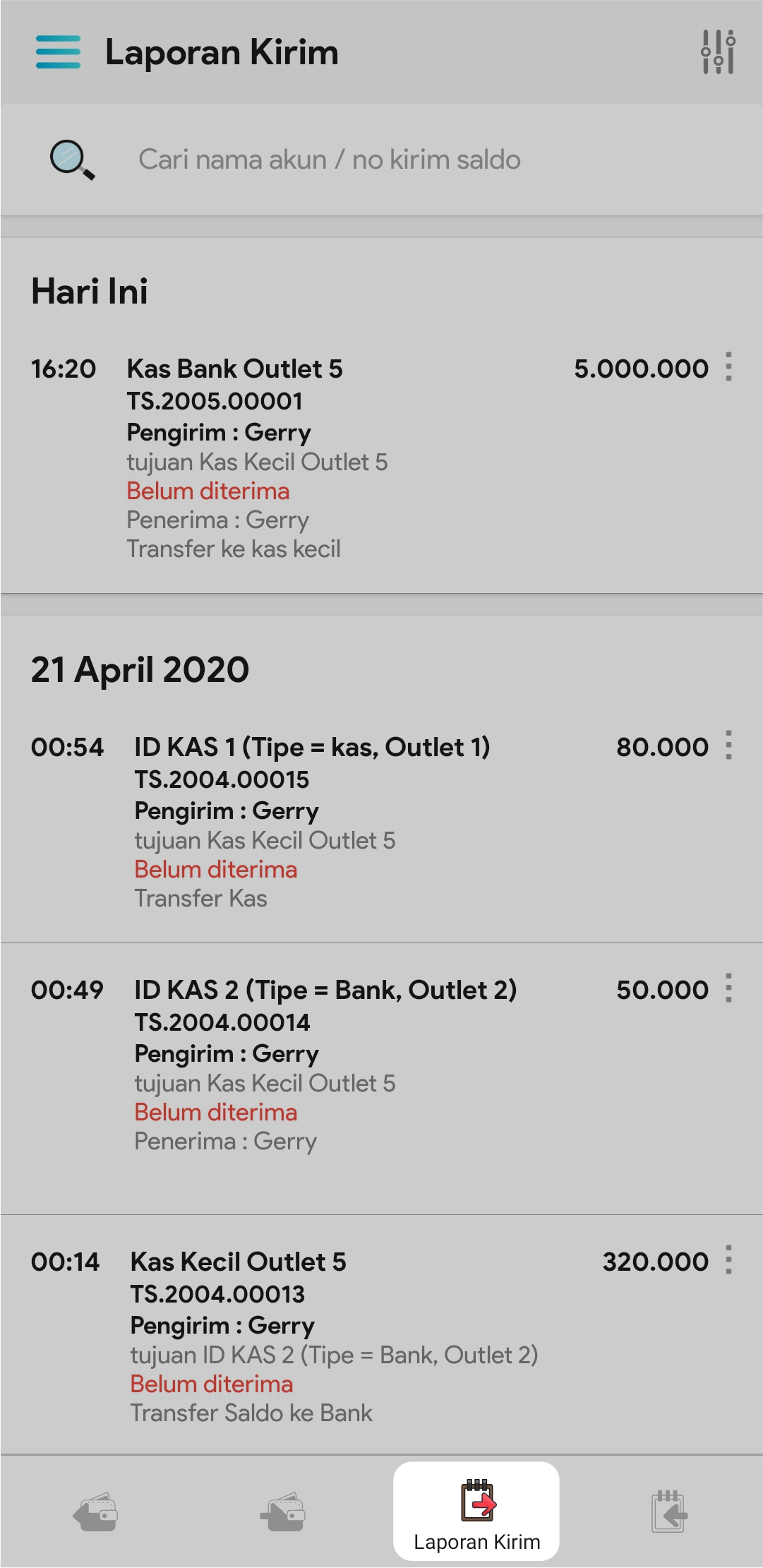 4. Informasi transaksi pengiriman saldo tersaji dengan lengkap