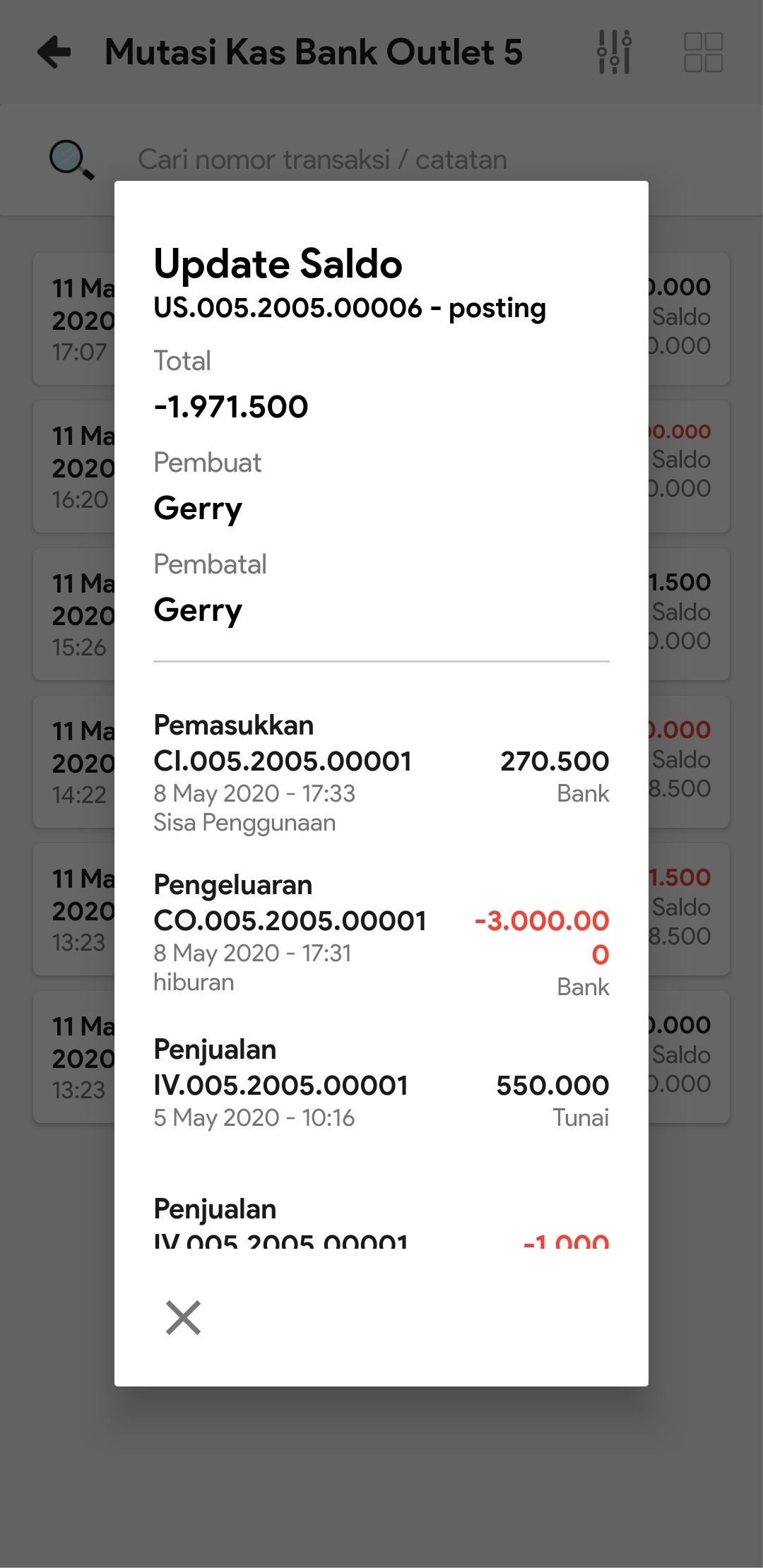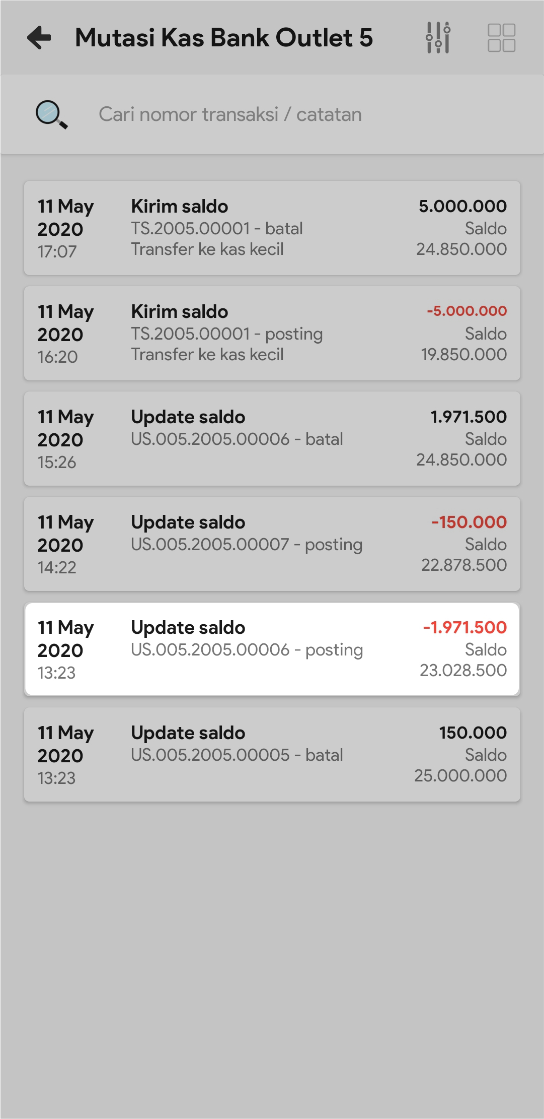 5. Pilih transaksi yang diinginkan untuk melihat informasi detail