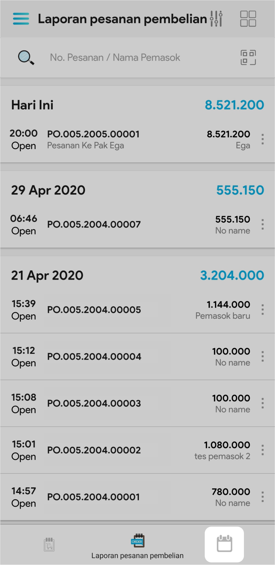 1. Pilih fasilitas Laporan Pesanan Pembelian