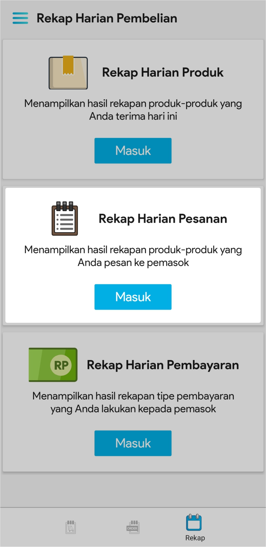 3. Pilih Masuk di bagian Rekap Harian Pesanan