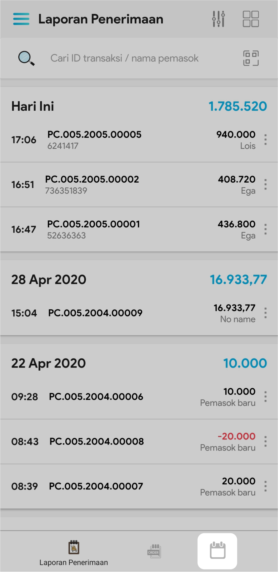 1. Pilih fasilitas Laporan Penerimaan
