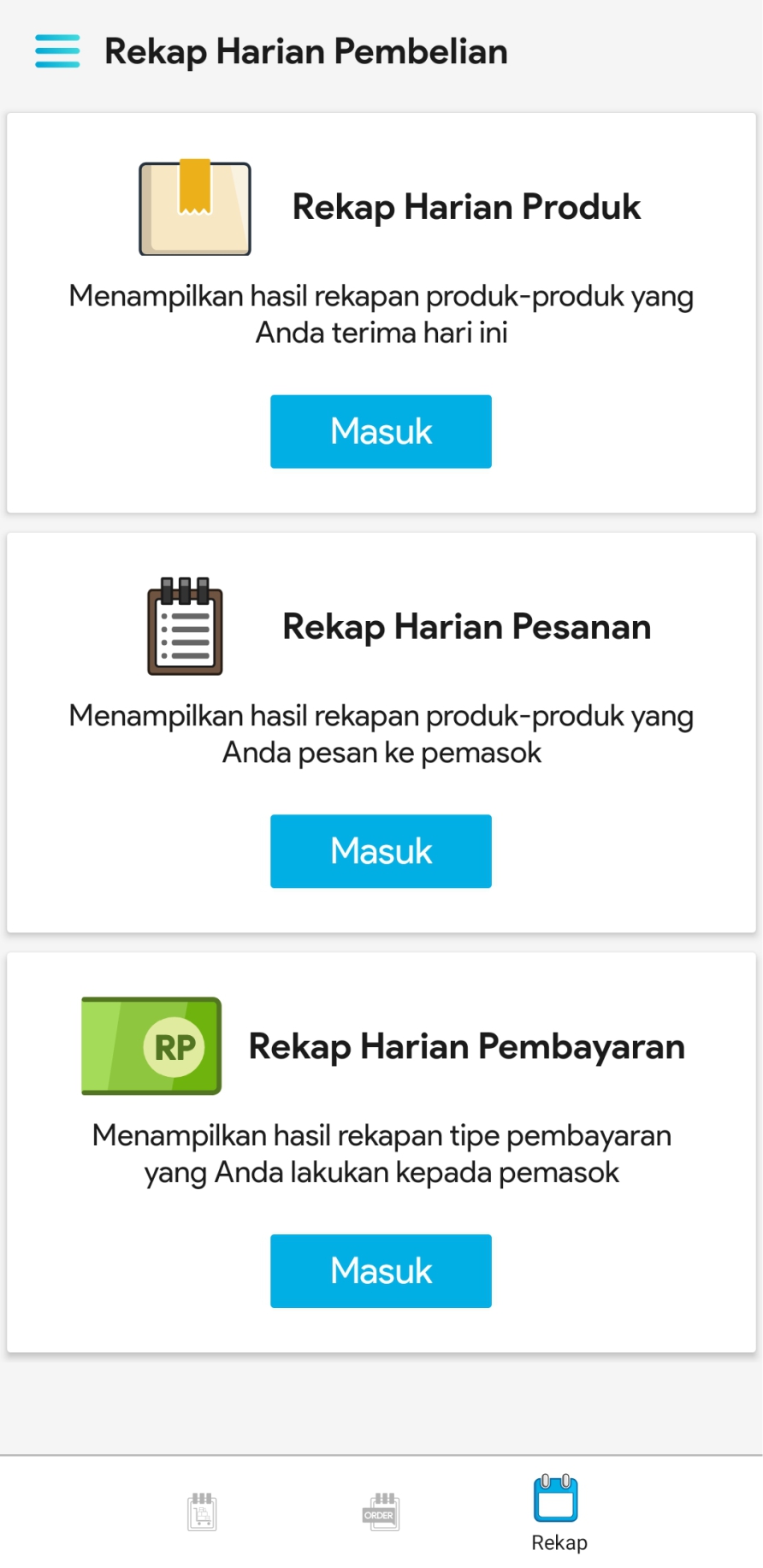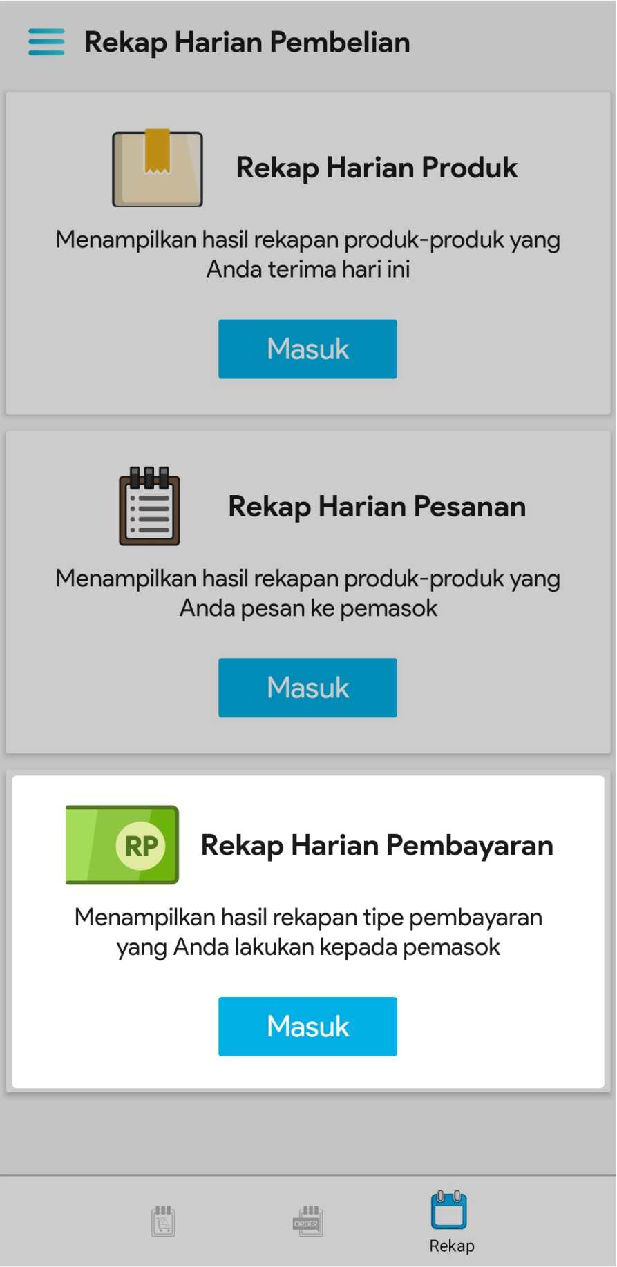 3. Pilih Masuk di bagian Rekap Harian Pembayaran