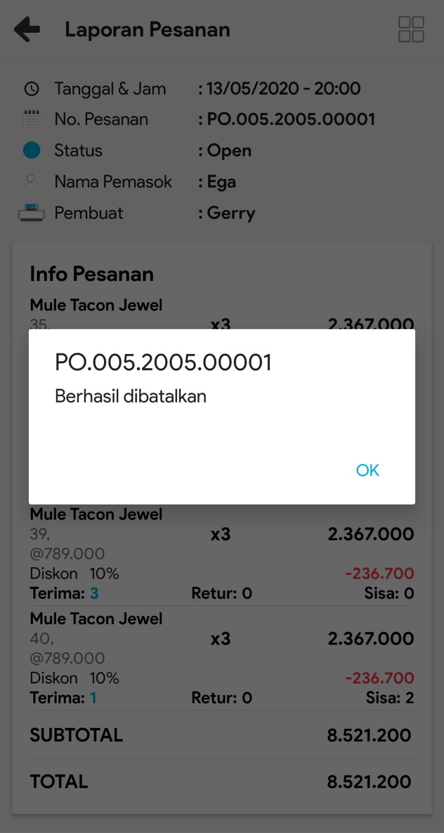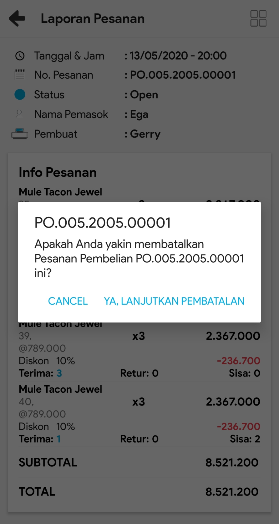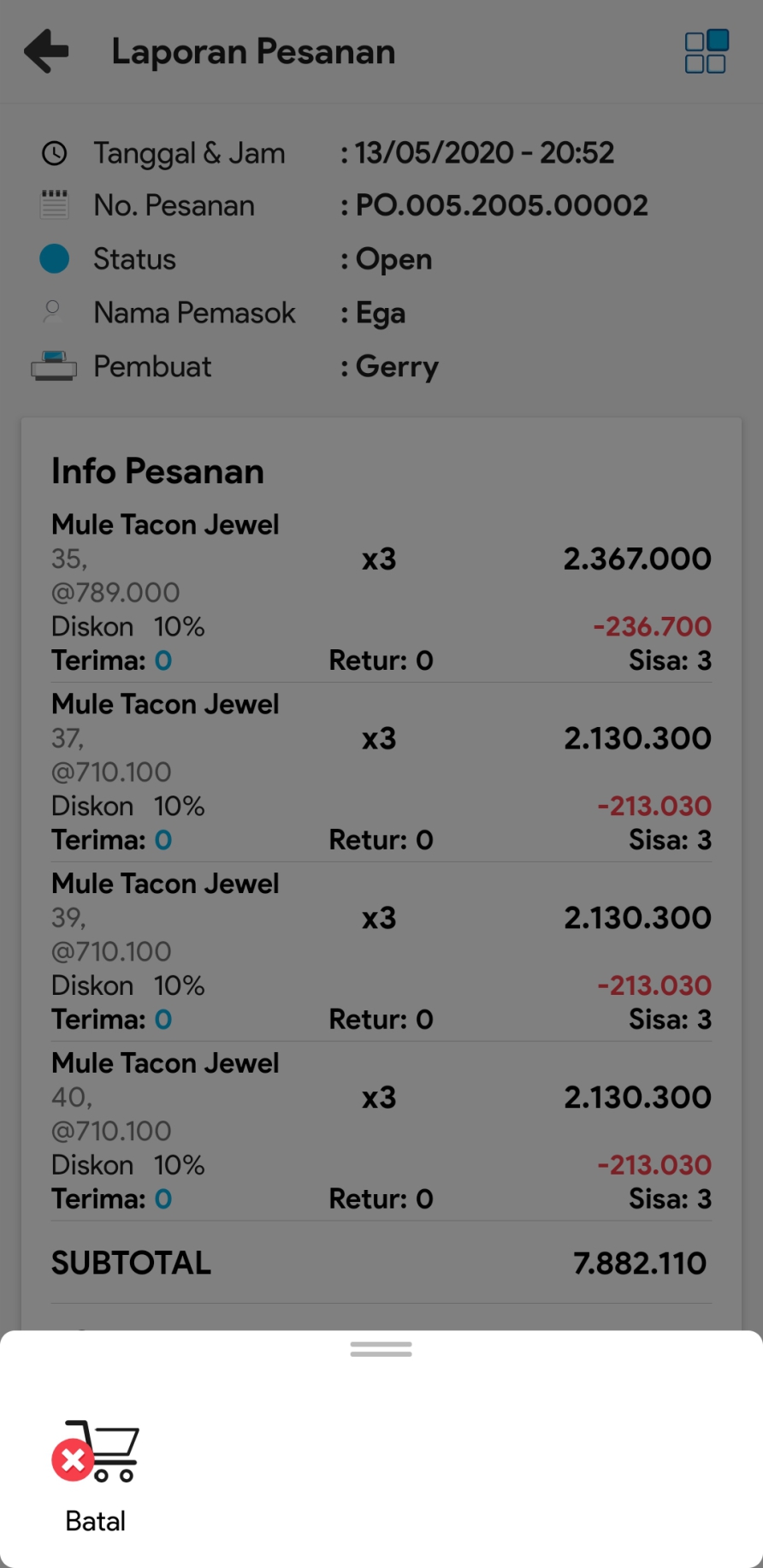 4. Pilih pesanan pembelian yang ingin dibatalkan