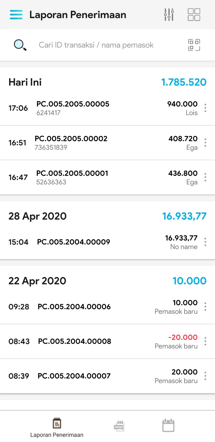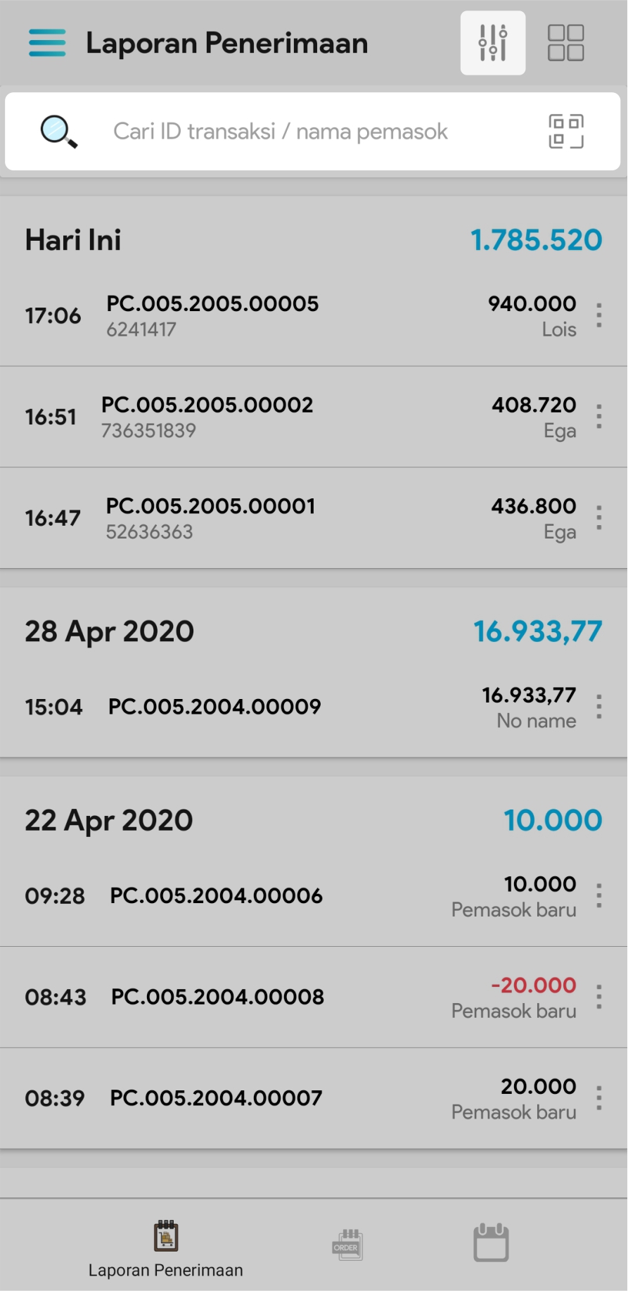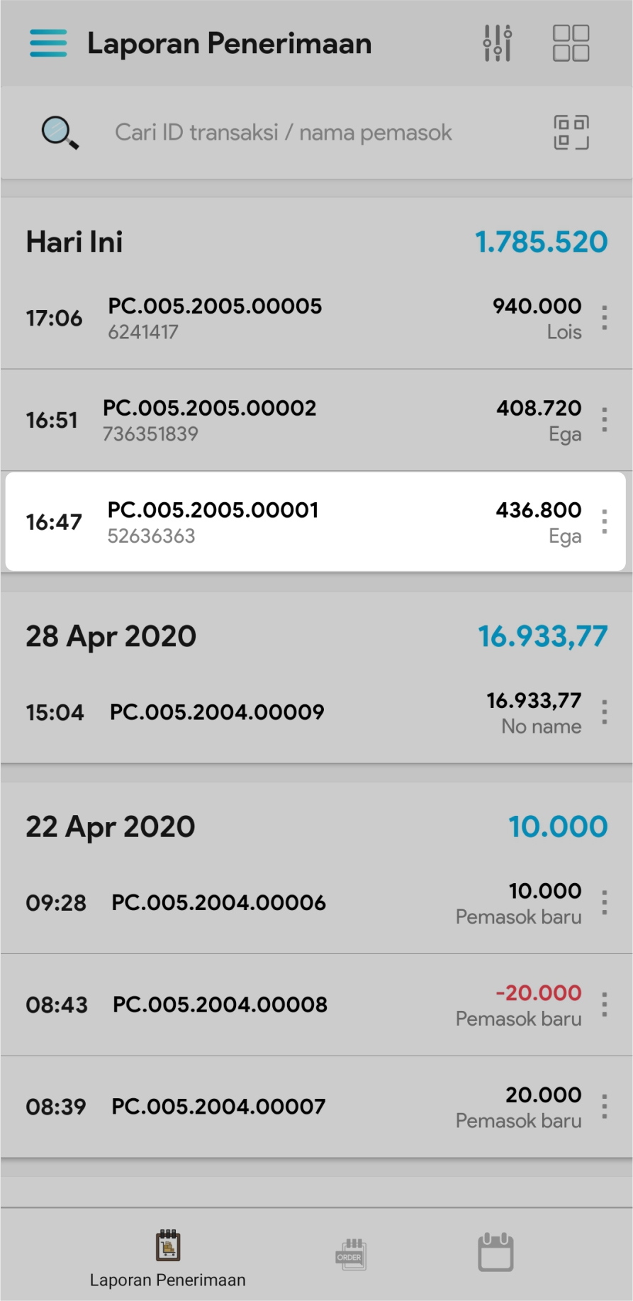 5. Pilih transaksi yang ingin dilihat