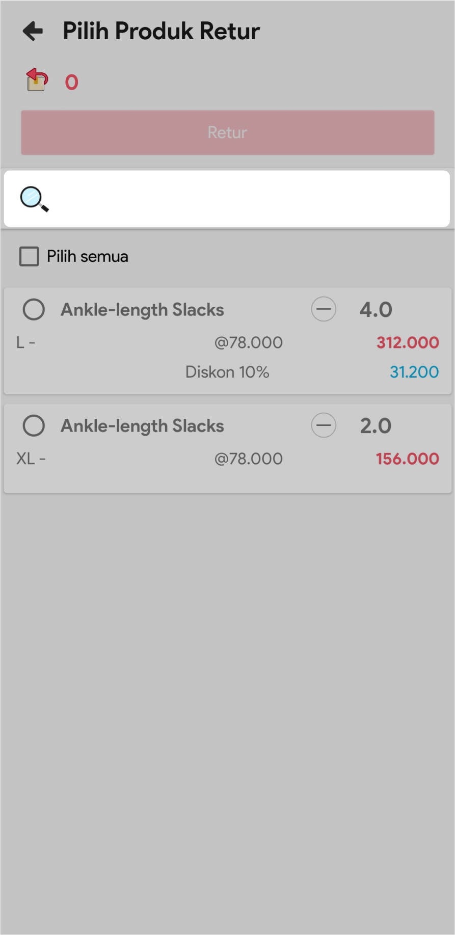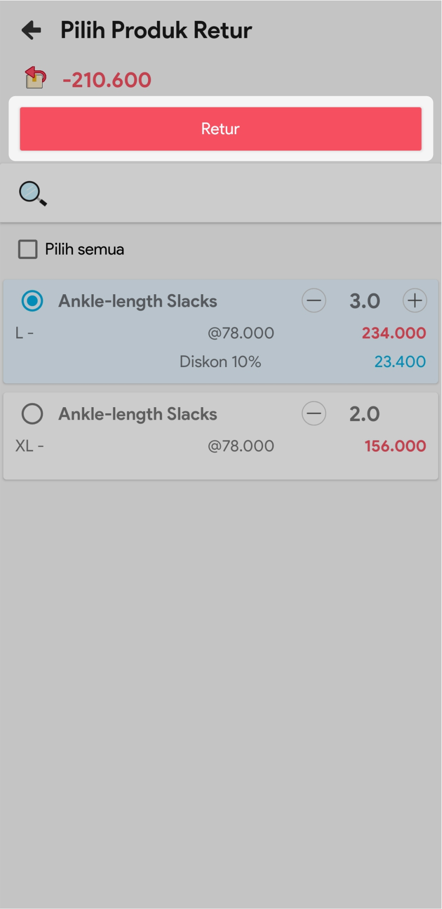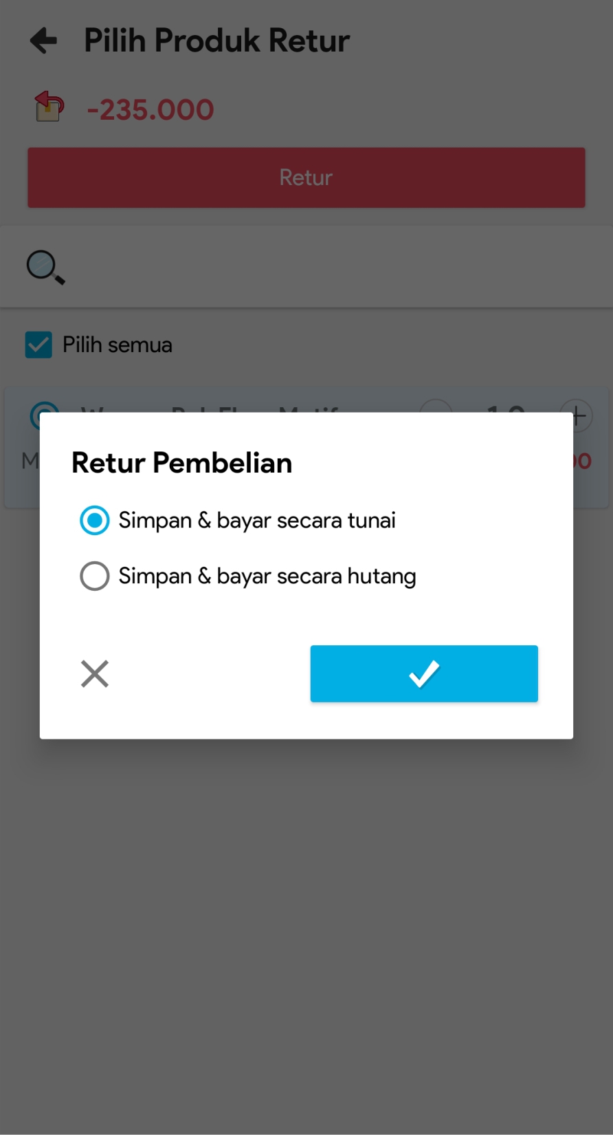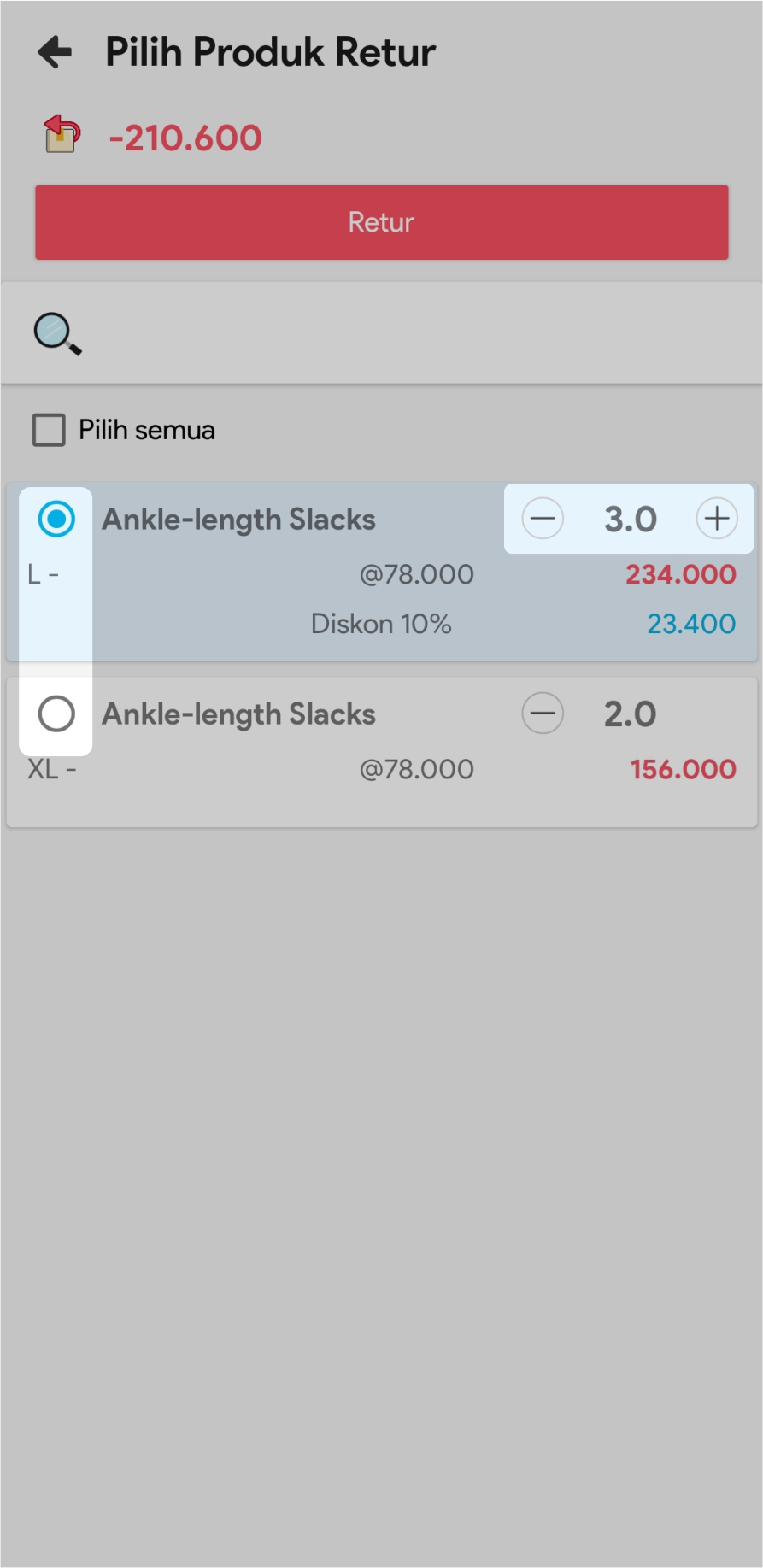 7. Pilih jumlah barang yang akan diretur