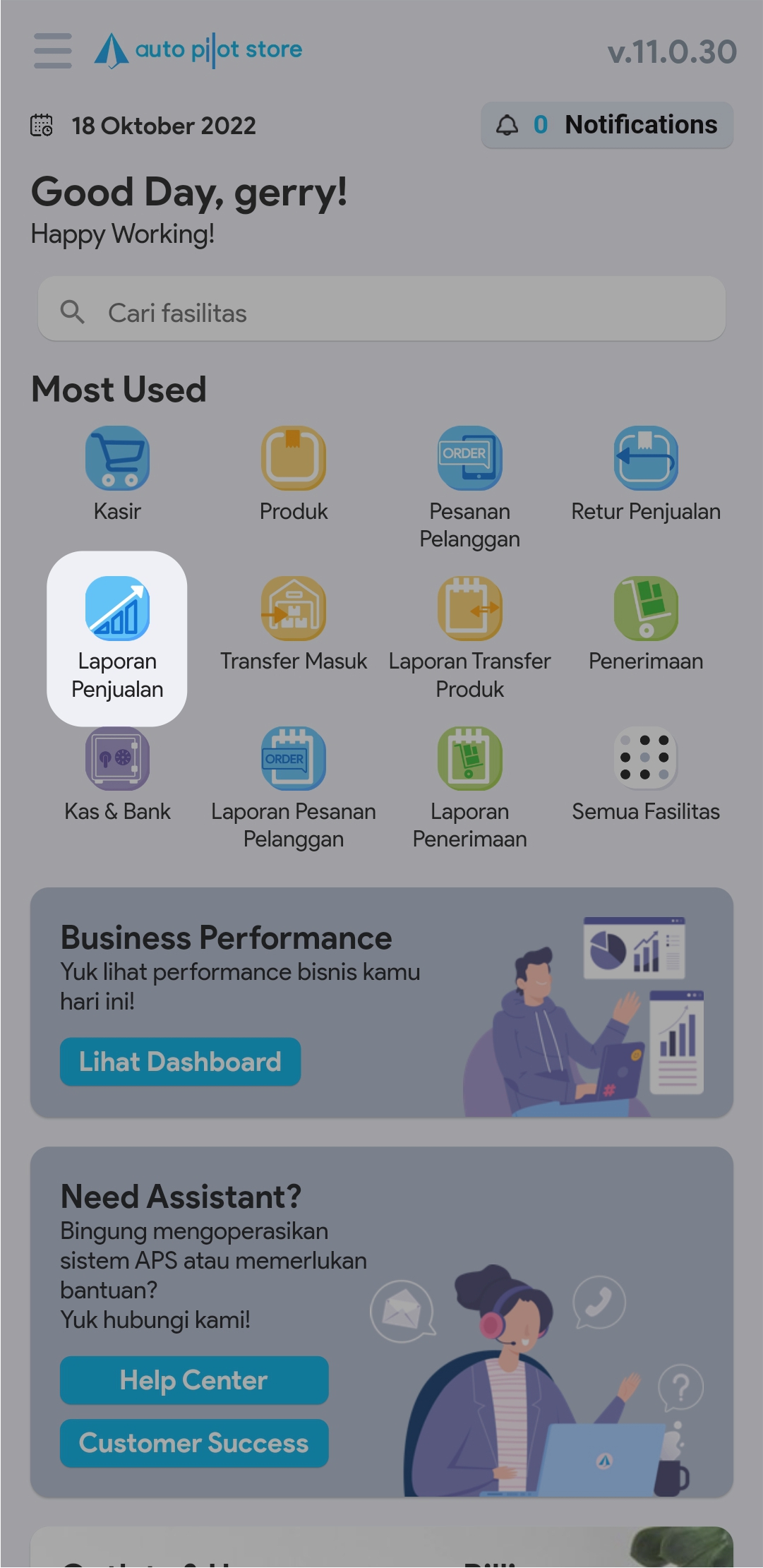 1. Pilih Fasilitas Laporan Penjualan