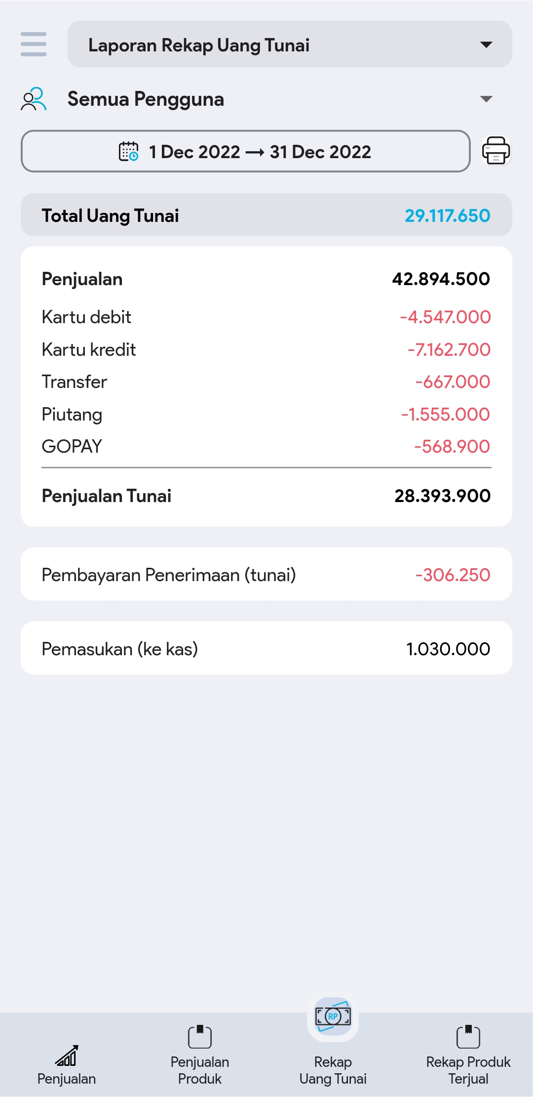 2. Pilih footer Rekap Uang Tunai