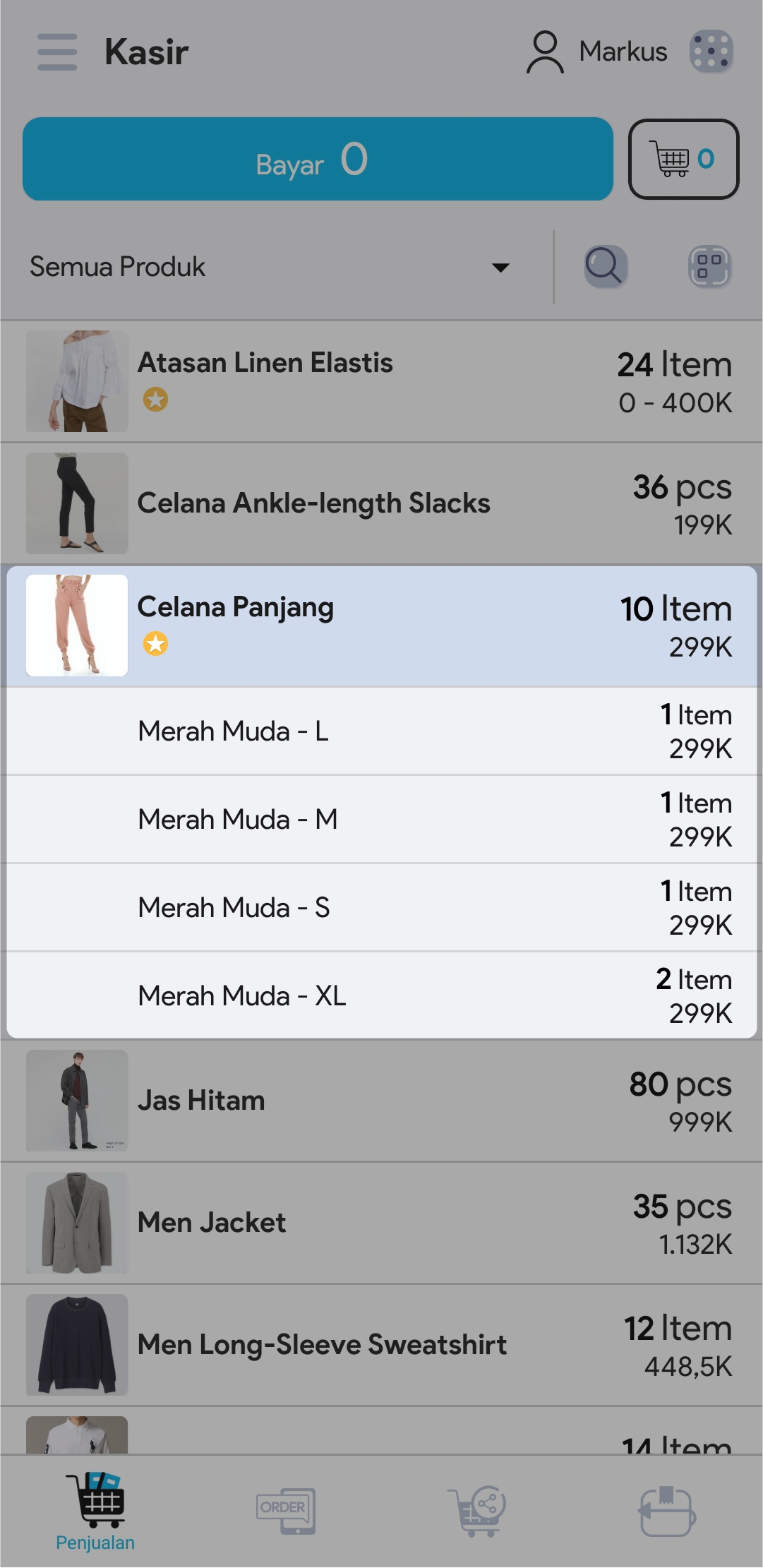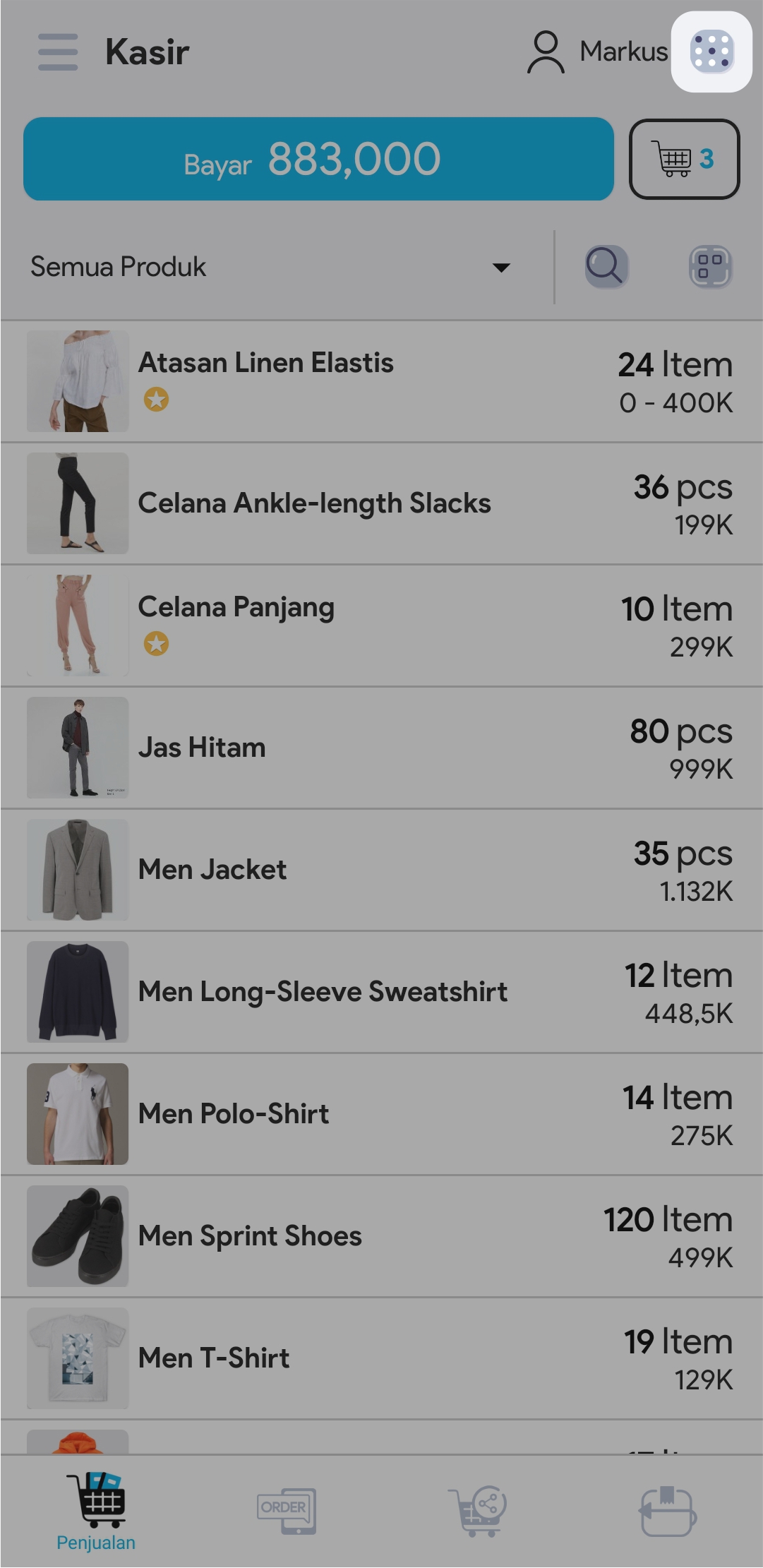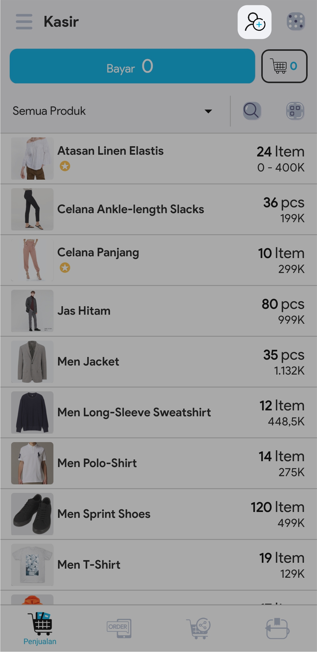 5. Masukkan jumlah produk dengan cara mengetuk produk sebanyak jumlah produk yang ingin ditransaksikan atau atur jumlah produk di segmen Keranjang
