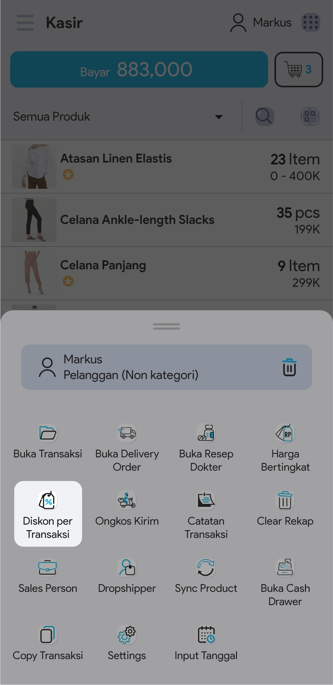 10. Pilih Diskon Per Transaksi untuk memberikan diskon bagi keseluruhan nominal total invoice